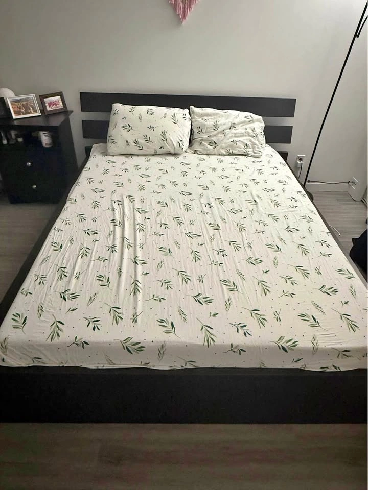 Well maintained. Dimensions are 211 cm * 168 cm. Headboard height is 100cm. Detailed dimensions are in the last photo.