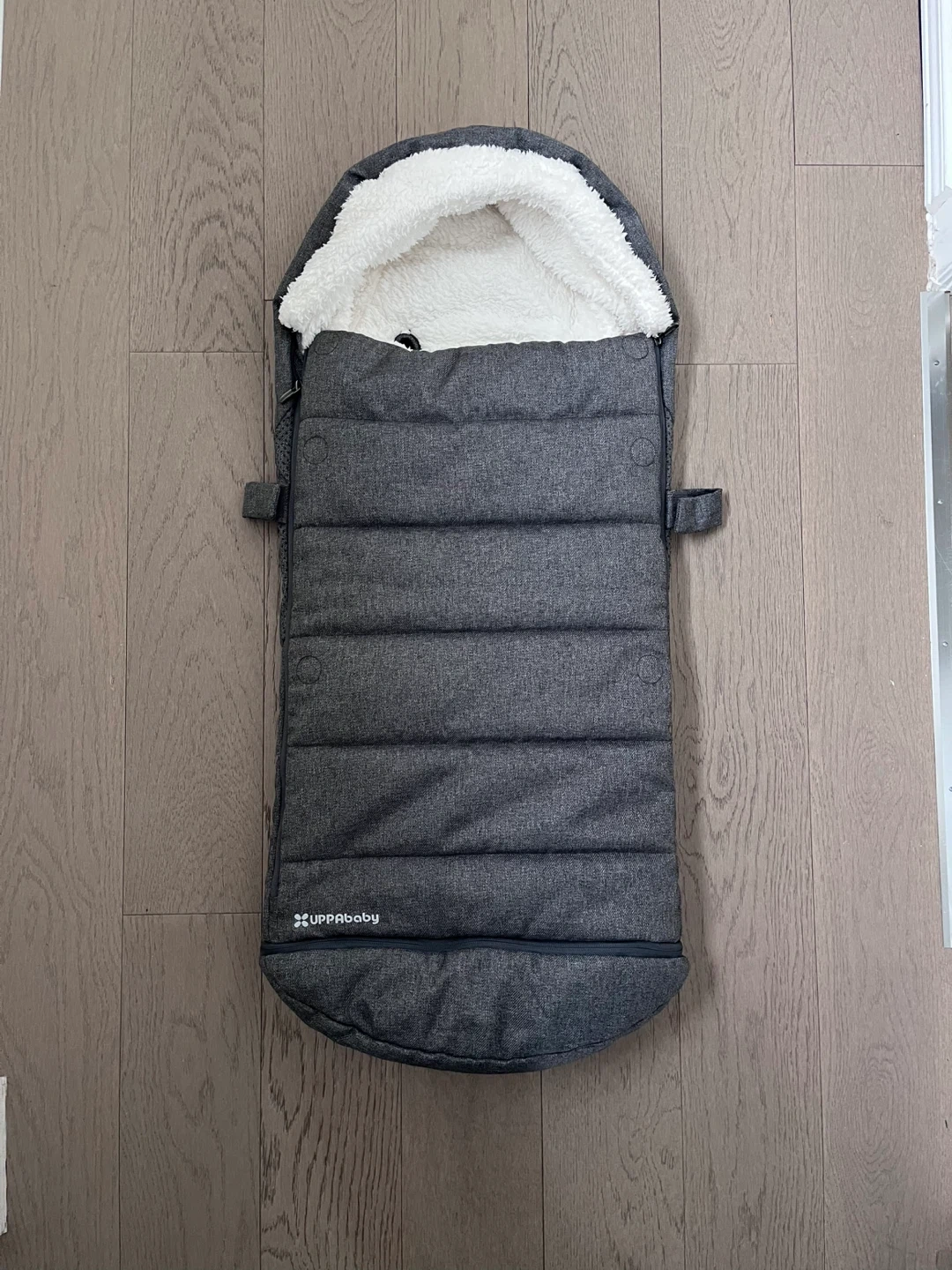 Keep your little one warm and cozy with this UPPAbaby CozyGanoosh footmuff! It's in great condition and comes with the original bag and instructions. Perfect for those chilly Canadian days! This item has been washed.