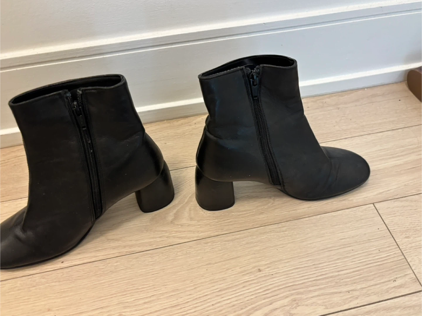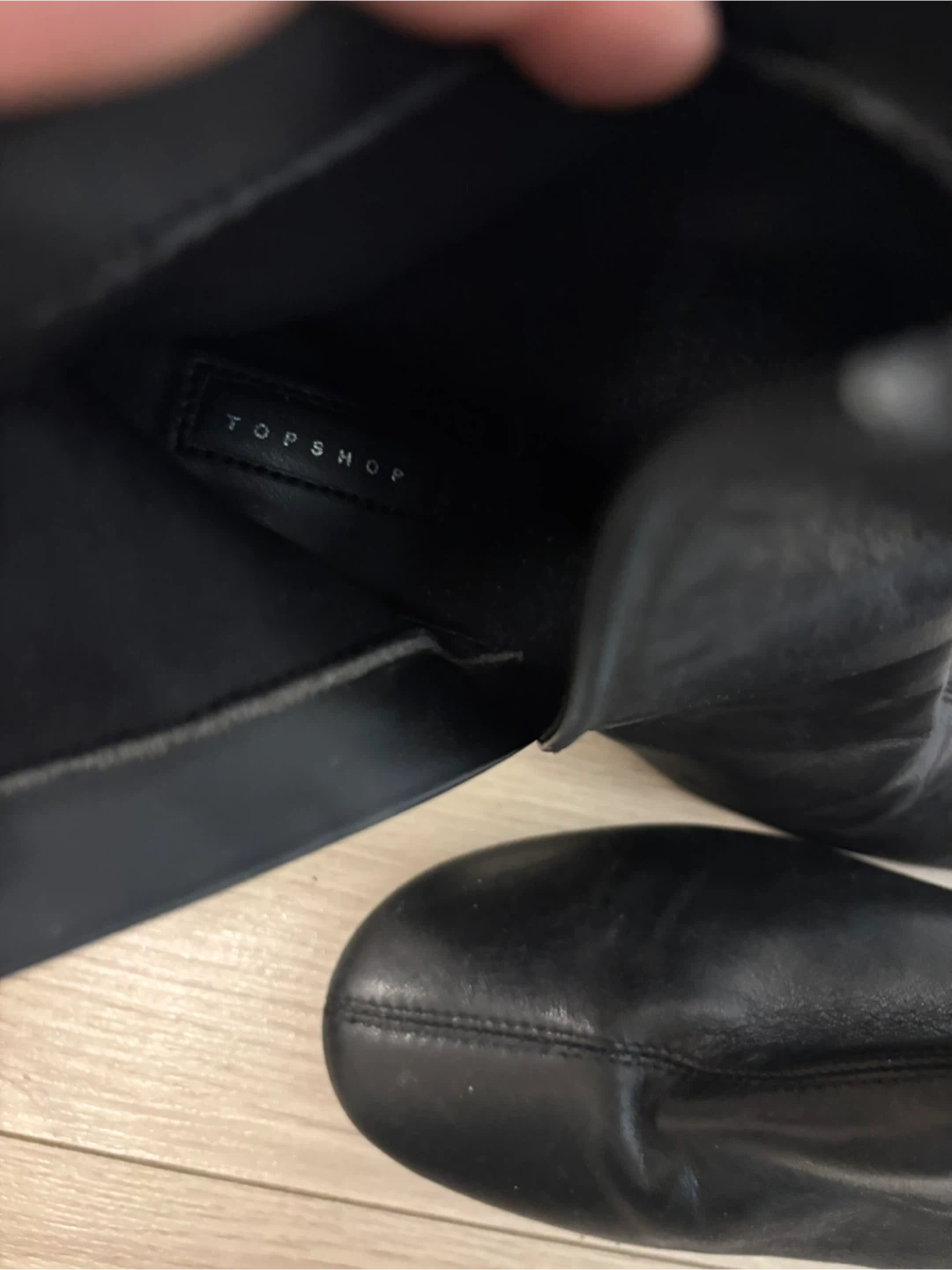Selling a pair of Topshop black ankle boots. They have a block heel and a zipper closure on the side. Perfect for dressing up or down! Mint pre owned condition size 38