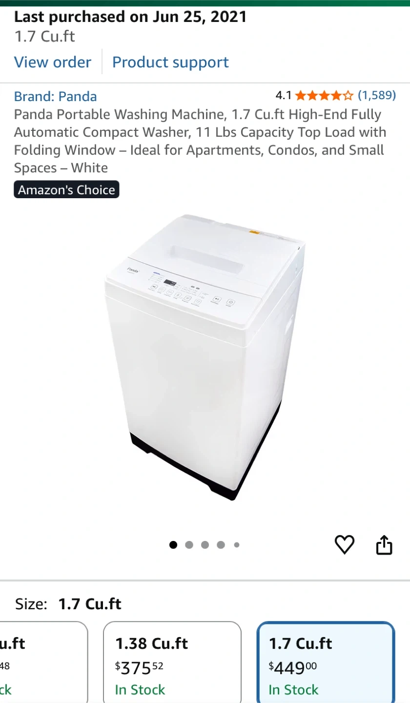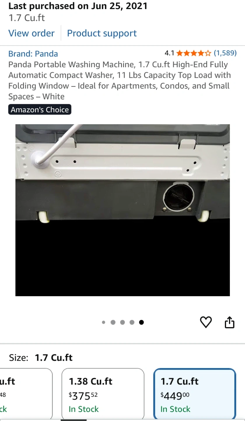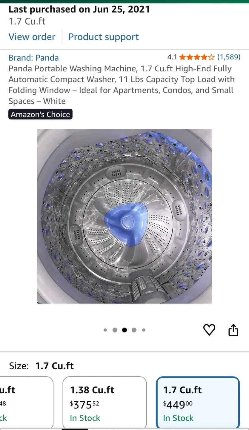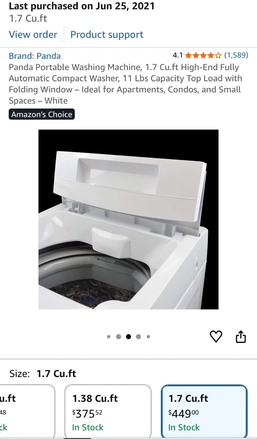 Selling a Panda portable washing machine! It's a compact washer with a 1.7 cu.ft capacity, perfect for apartments, condos, and small spaces. It's a high-end, fully automatic top load washer with a folding window. I bought this for $479.99 plus tax. Current price at Amazon $449 plus tax. Not used, in the original box.