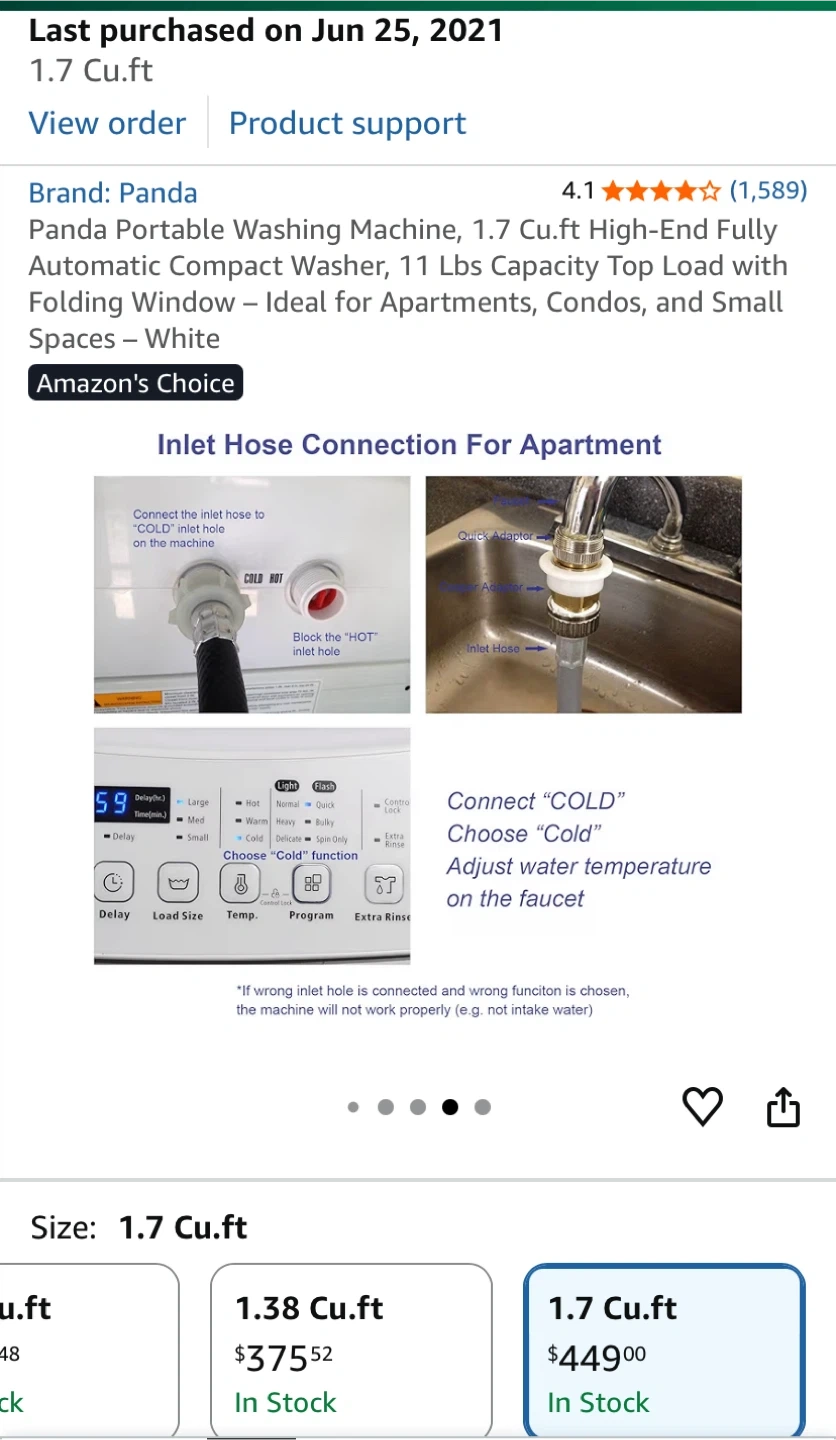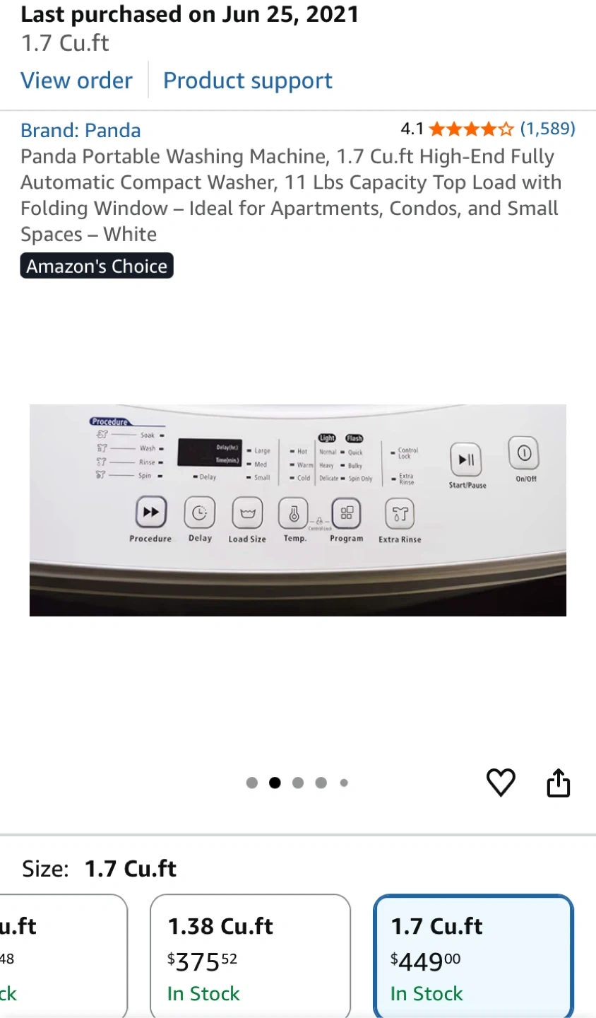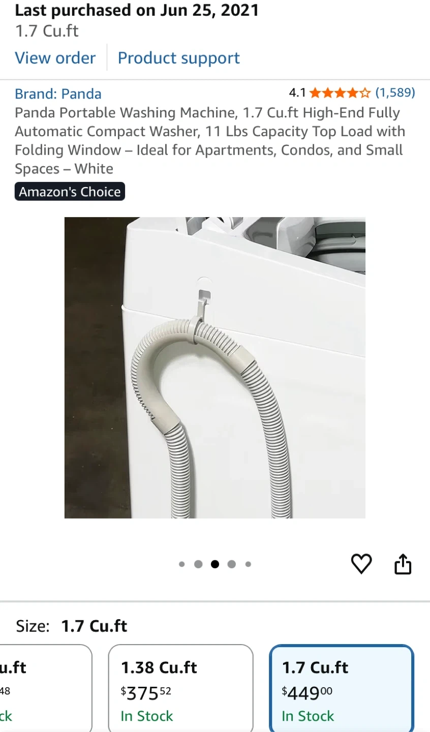 Selling a Panda portable washing machine! It's a compact washer with a 1.7 cu.ft capacity, perfect for apartments, condos, and small spaces. It's a high-end, fully automatic top load washer with a folding window. I bought this for $479.99 plus tax. Current price at Amazon $449 plus tax. Not used, in the original box.