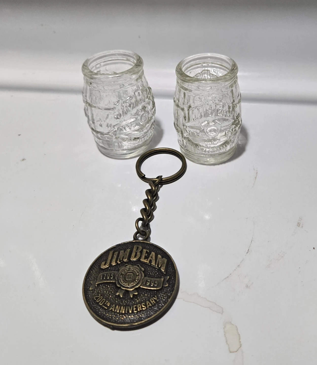 Jim Beam 200th Anniversary Keychain & Shot Glasses