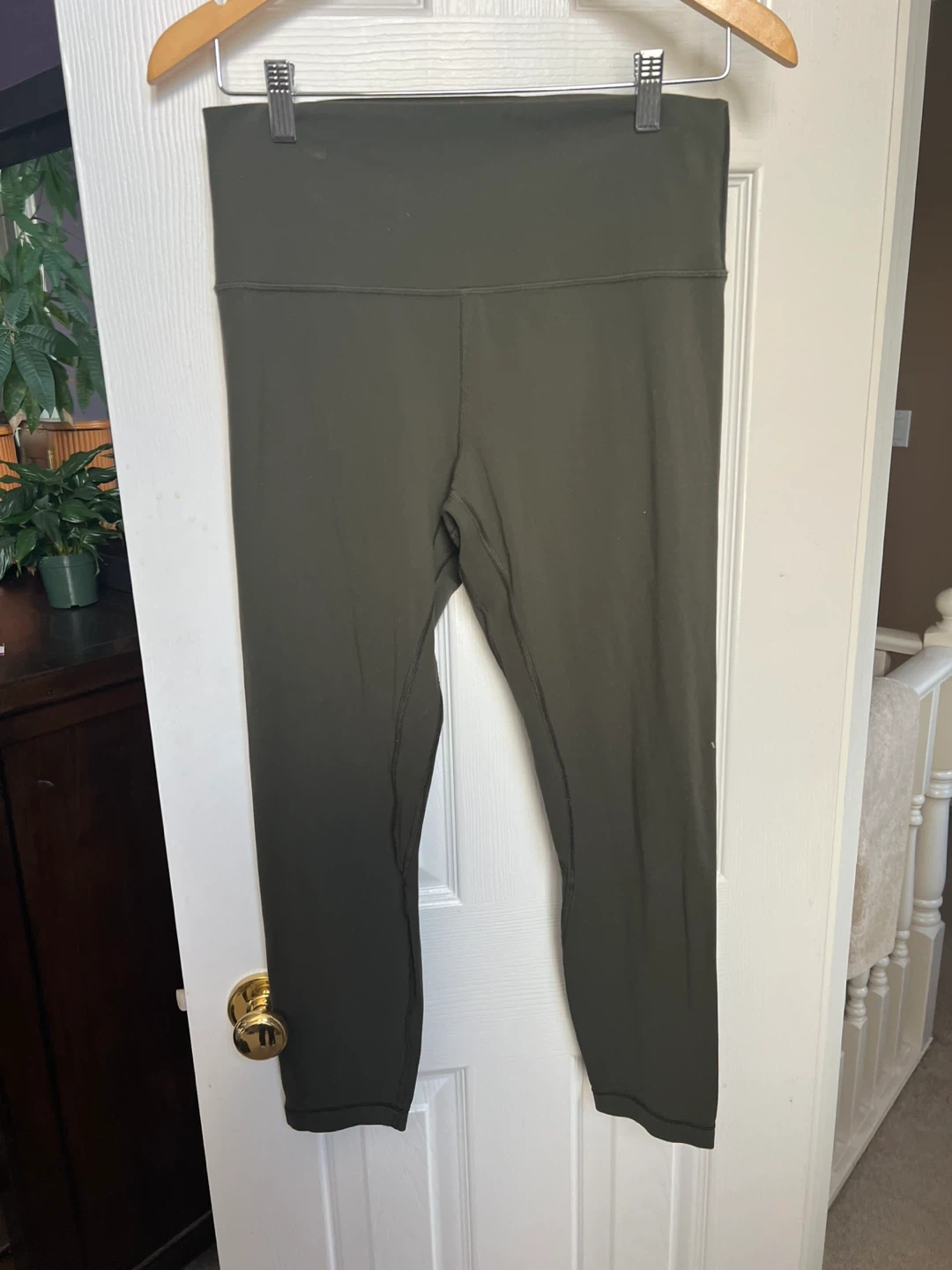 Selling a pair of Lululemon leggings in a lovely olive green colour! They're in great condition and are a size 10. Perfect for workouts or just lounging around