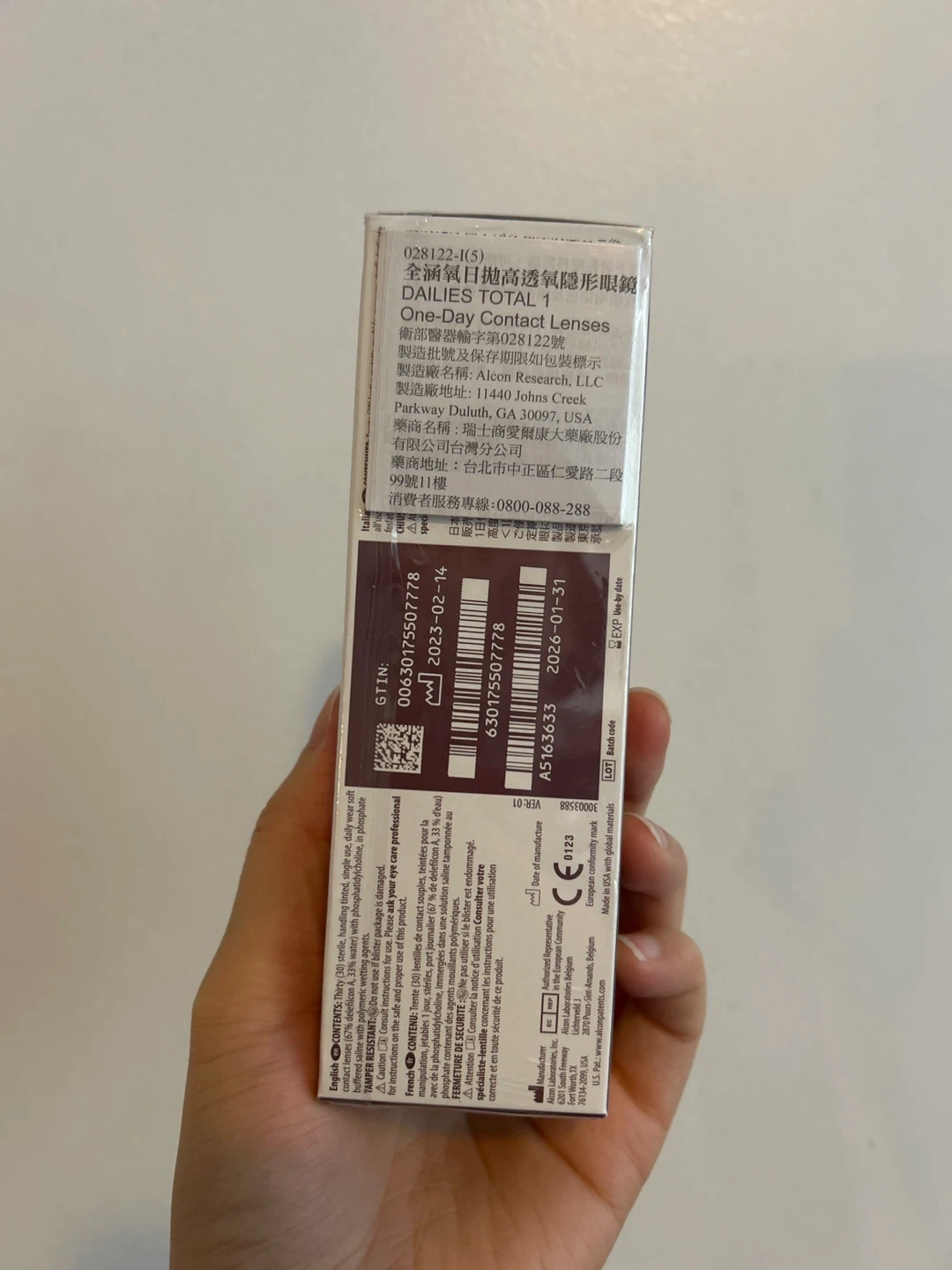 Selling a box of Alcon Dailies Total 1 one-day contact lenses, power -4.25. The expiry date is January 2026
