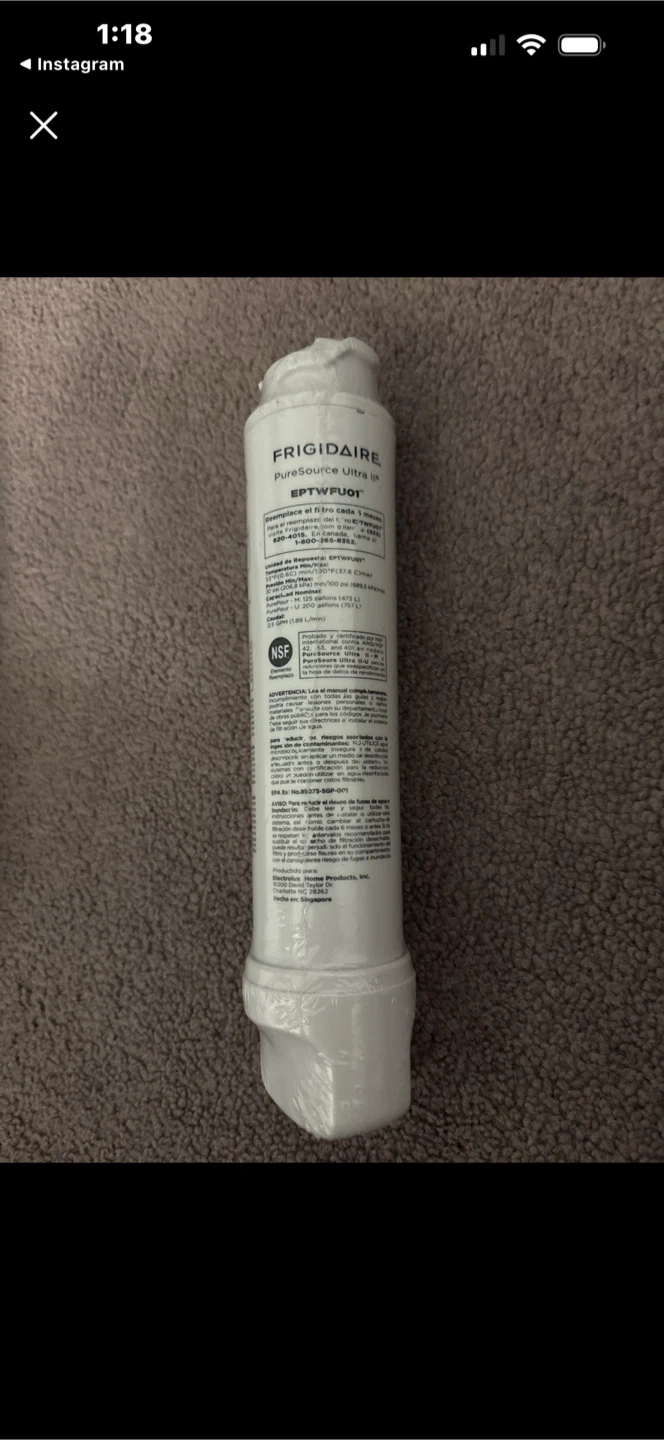Selling a Frigidaire PureSource Ultra II water filter, model EPTWFU01. This filter is designed to replace your current filter every 6 months to keep your water clean and fresh. It's certified by NSF International to reduce certain contaminants in your drinking water. Perfect for maintaining the quality of your water!