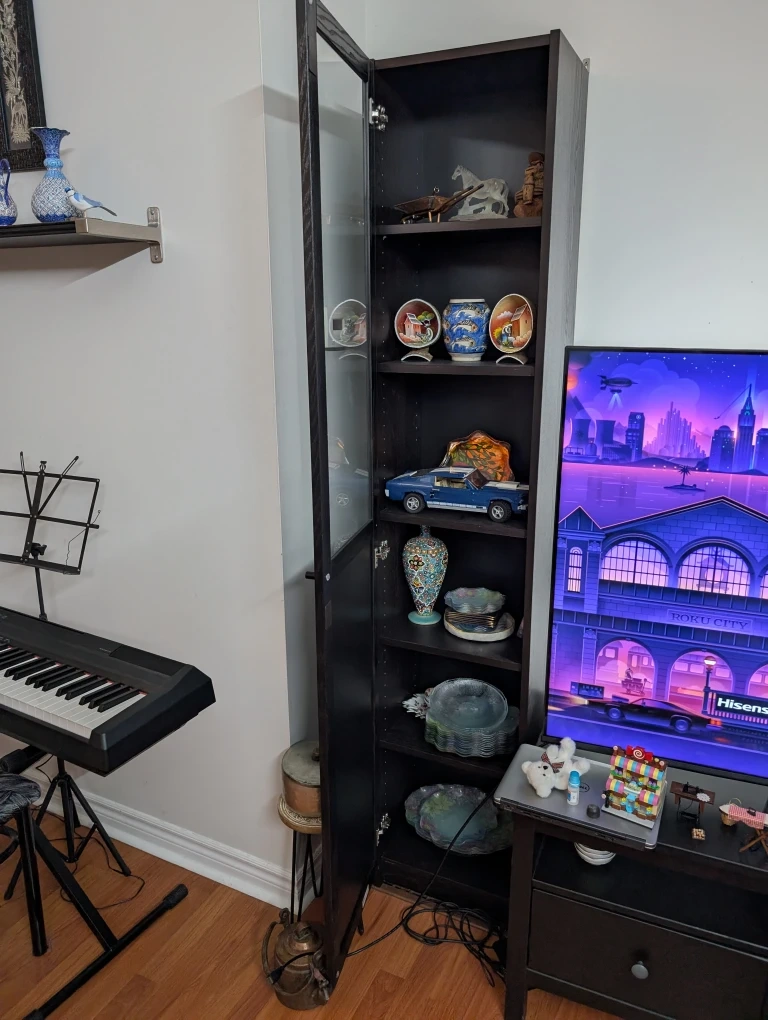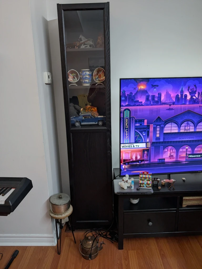 Selling a tall dark brown cabinet with a glass door. It's in great shape and perfect for displaying your favourite items
