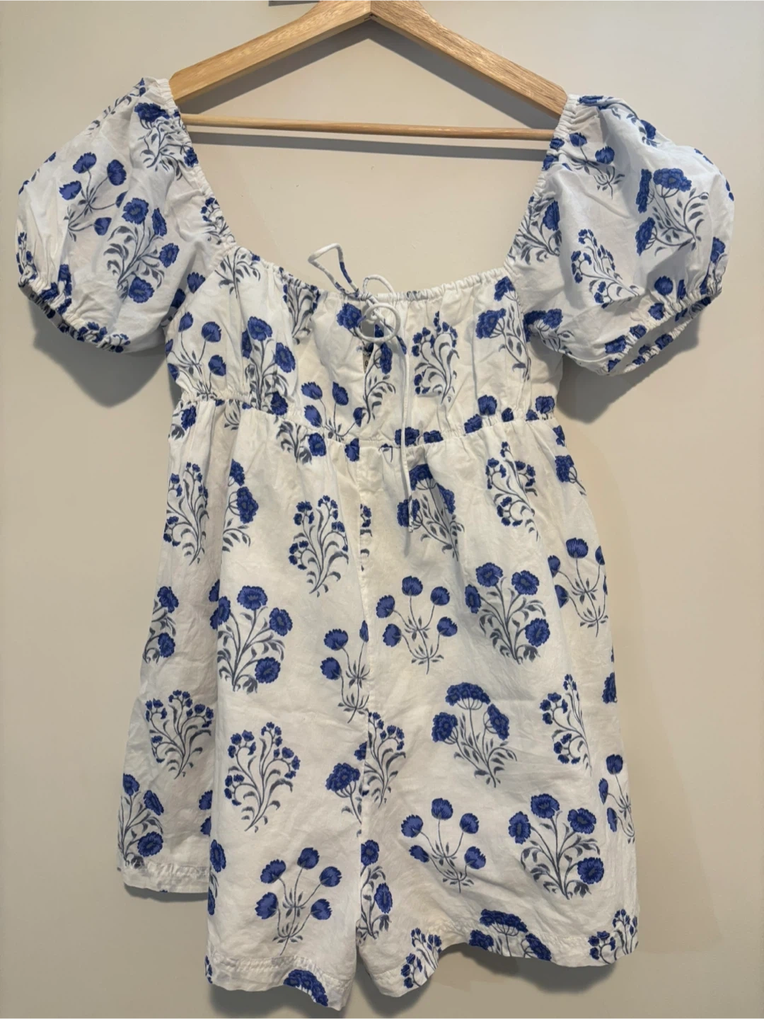 This cute Urban Outfitters romper is perfect for summer! It features a blue floral pattern on a white background. Size medium and in great condition. Super comfy and perfect for a sunny day out!