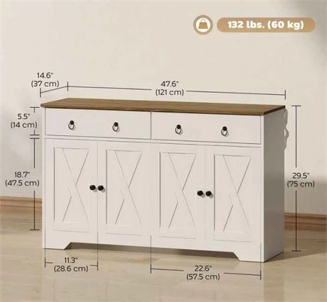 NEW OPEN BOX Homcom 47.6" 2-Drawers Wooden Sideboard Cabinet