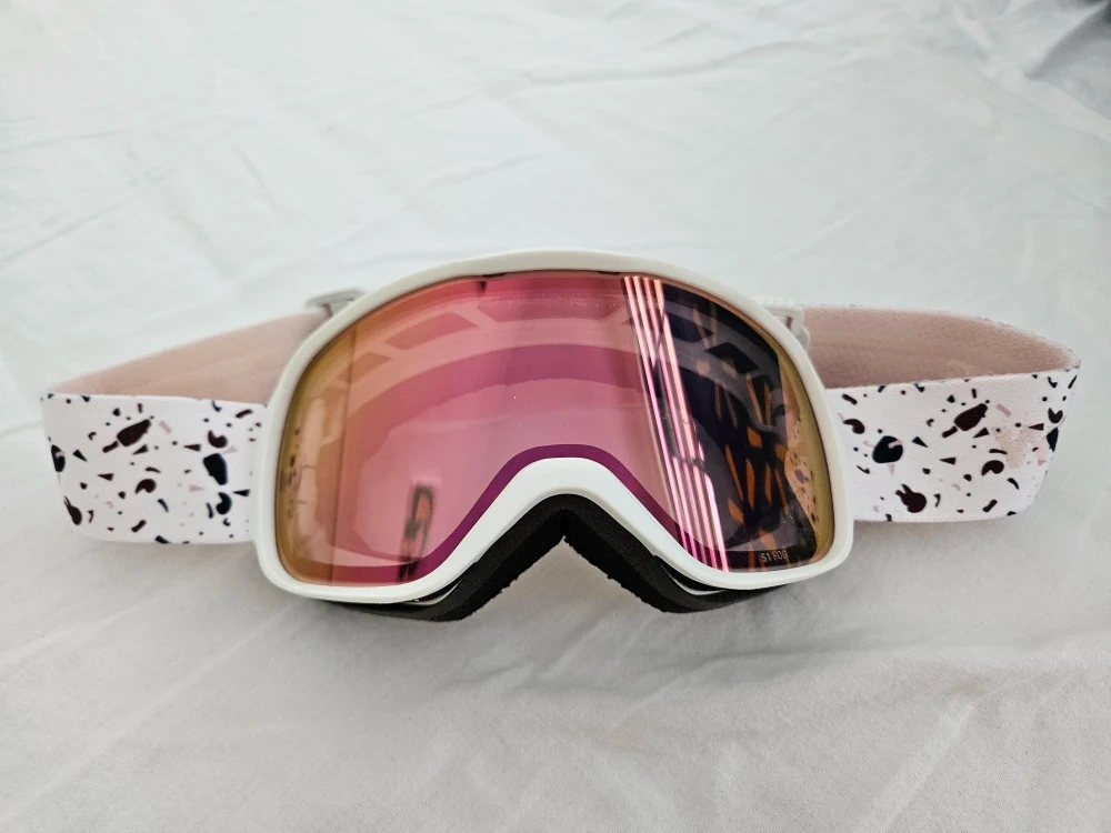 They're in excellent condition, only wear once. The strap has a cute speckled pattern. Perfect for keeping your eyes protected while skiing or snowboarding this winter.