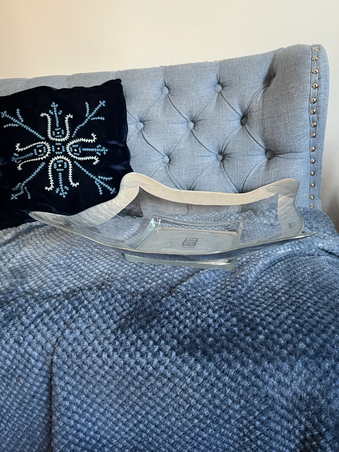 Elevate your table with this stunning Badash serving dish. Crafted from high-quality glass with a sophisticated silver frame, it’s perfect for serving salads, appetizers, or desserts. Hand-wash recommended to preserve the silver trim. Ideal for parties, holidays, or as a decorative centerpiece. Never used, in excellent condition.