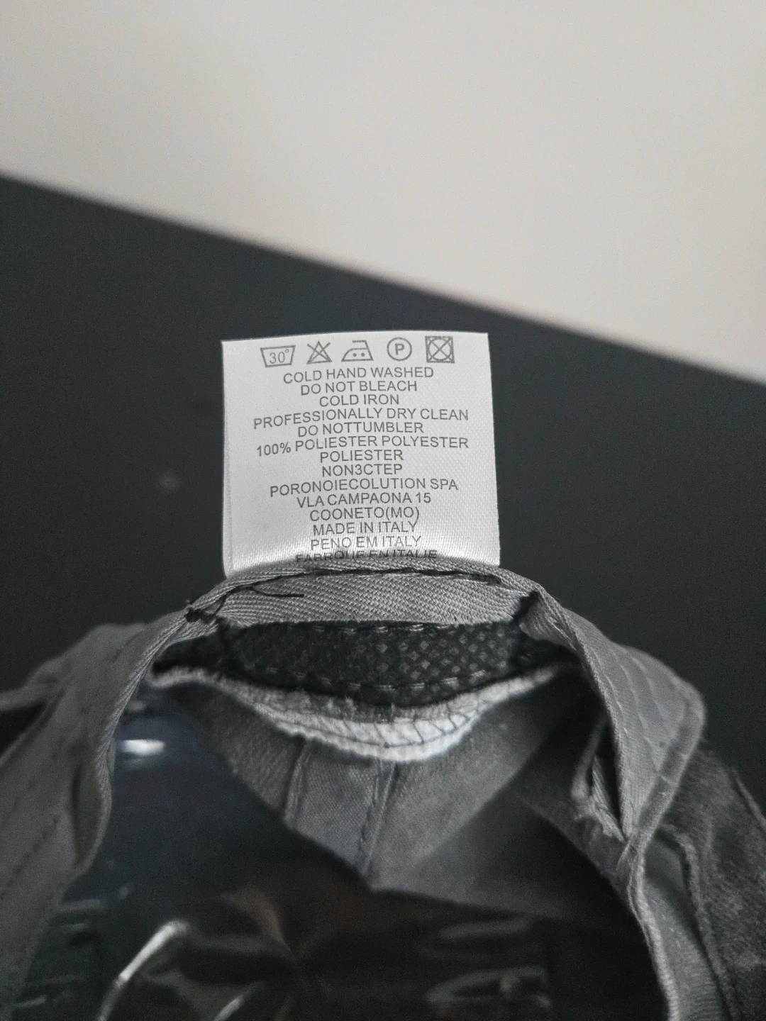 100% polyester, Made in Italy. Adjustable back strap, comes with original Patagonia packaging.