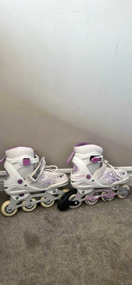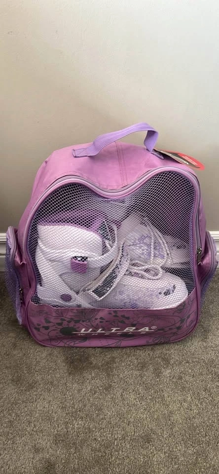 Inline skates convertible to ice skates. The bags comes with protective pads and a bag. Size is adjustable to junior size 1-4.