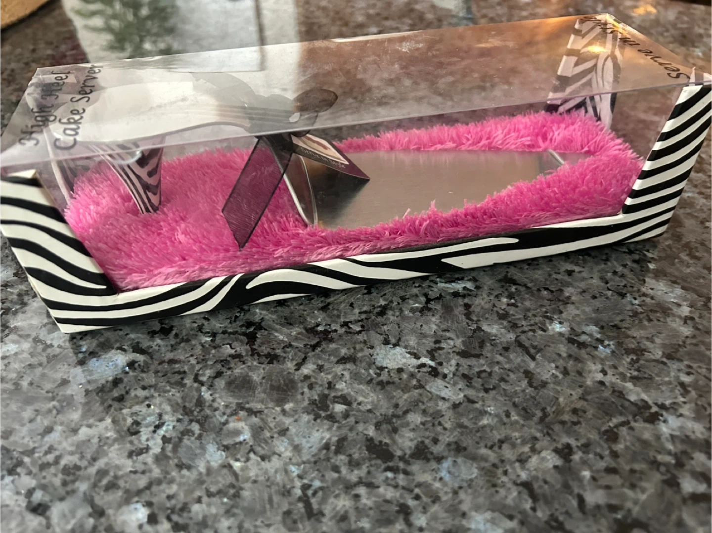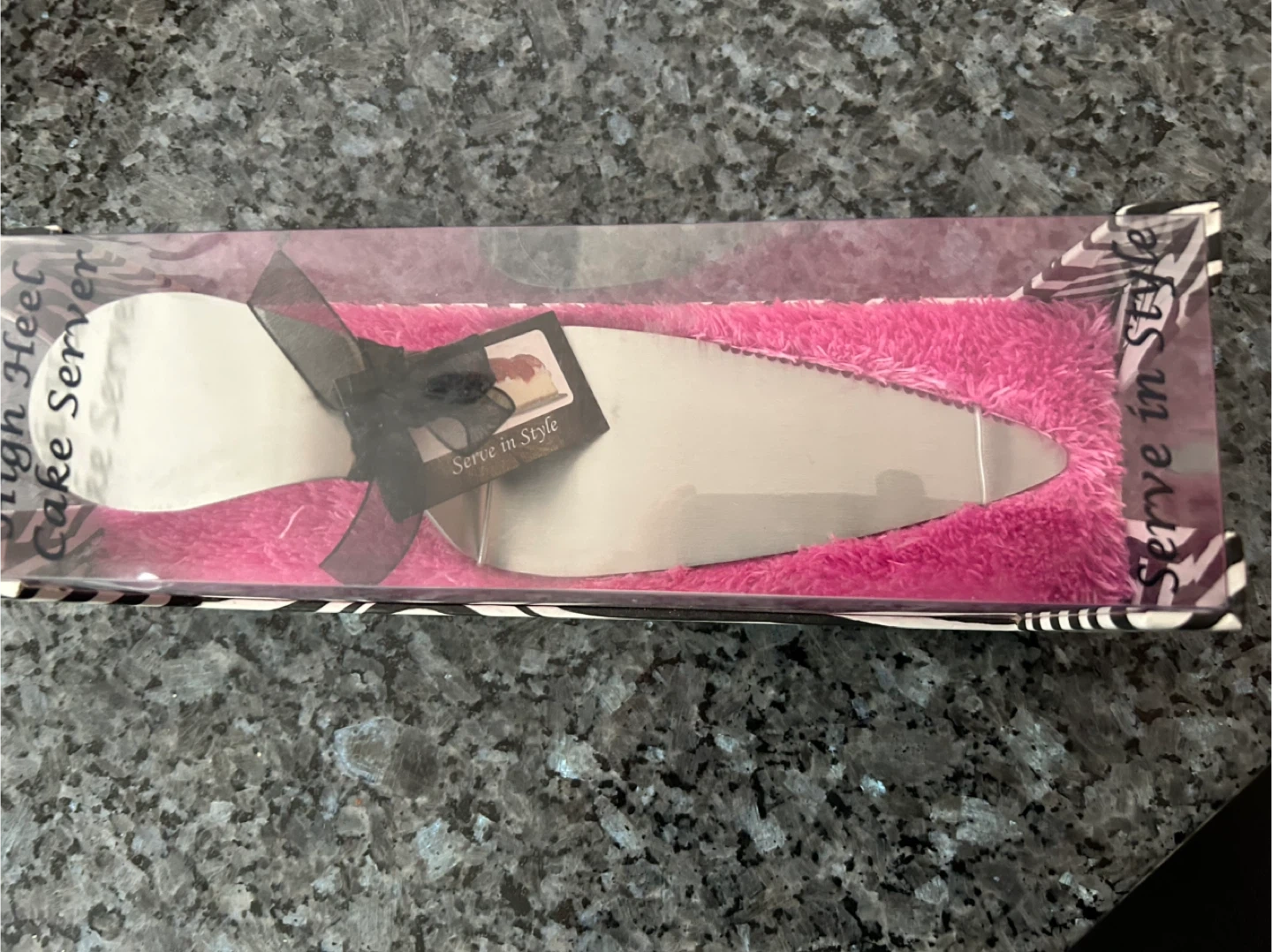 Here's a fun cake server still in its original packaging! It's a high heel design and says 'Serve in Style' on the box. Perfect for adding a little flair to your dessert table