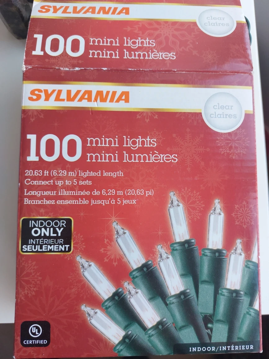 Selling a box of Sylvania 100 mini clear lights. These are for indoor use only. Add a festive touch for the holidays.