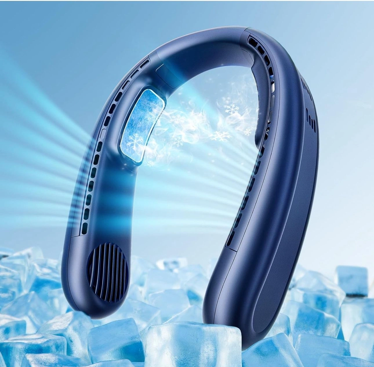 Neck Fan with Dual Ceramic Cooling Plates, 3-Speed 30℉ Instant Cool-Down, 360° Bladeless Cooling Airflow, Rechargeable Lightweight Personal Fan Strengthen