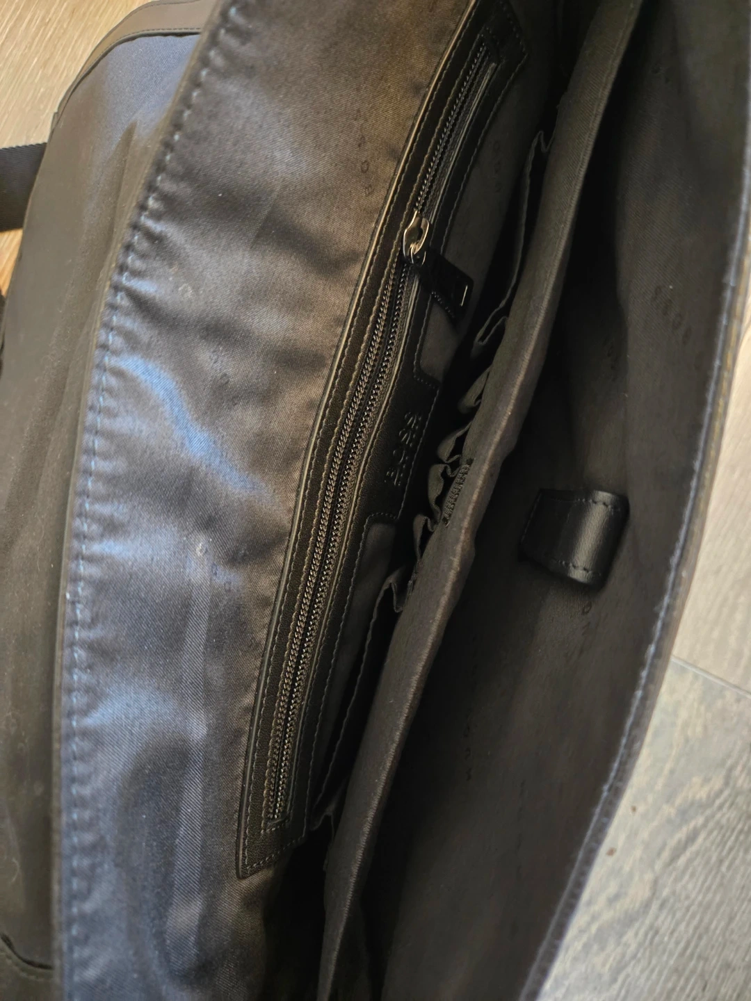 Buy & SellHugo Boss Black Leather Messenger BagHugo Boss Black Leather Messenger Bag$275This is a Hugo Boss black leather messenger bag. It features the Hugo Boss logo on the front and on the strap. ConditionLike newBrandHugo BossWHERE TO MEETDowntown Brooklyn CVSView MapSELLERverifiedHaileyDowntown Brooklyn750 reviews0 chats·0 favorites·7 views
