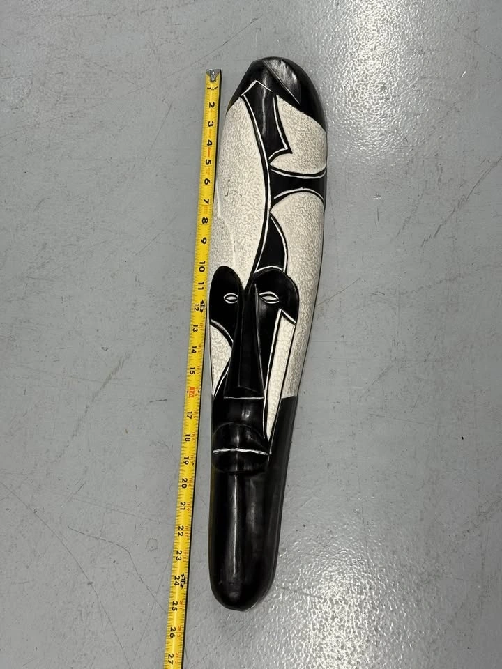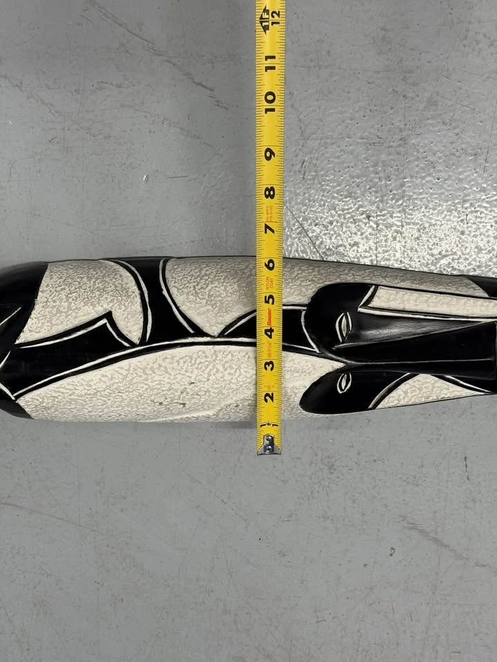 Abstract Black & White Carved Wall Mask 25” Modern African Art