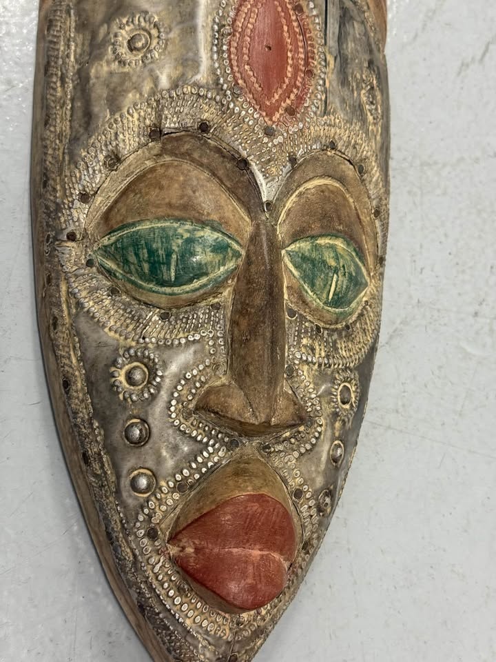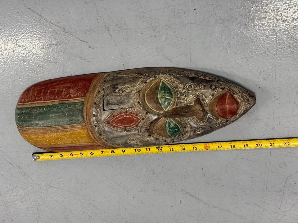 Hand Painted Tribal Wall Mask 20” Decorative Art