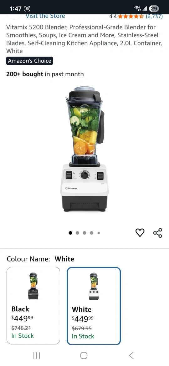Selling a white Vitamix 5200 blender! It's a professional-grade blender perfect for smoothies, soups, ice cream, and more. It features stainless-steel blades and a self-cleaning kitchen appliance. The container size is 2.0L. Originally bought for $449.99