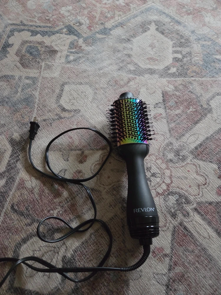 Looking to sell my Revlon One-Step Volumizer hair dryer brush! It's in great condition and ready to help you achieve salon-worthy blowouts at home. The brush features a unique oval design for smoothing the hair, while the round edges create volume. The bristles have a combination of nylon pin and tufted bristles for detangling, improved volume and control. It's lightweight and easy to use!
