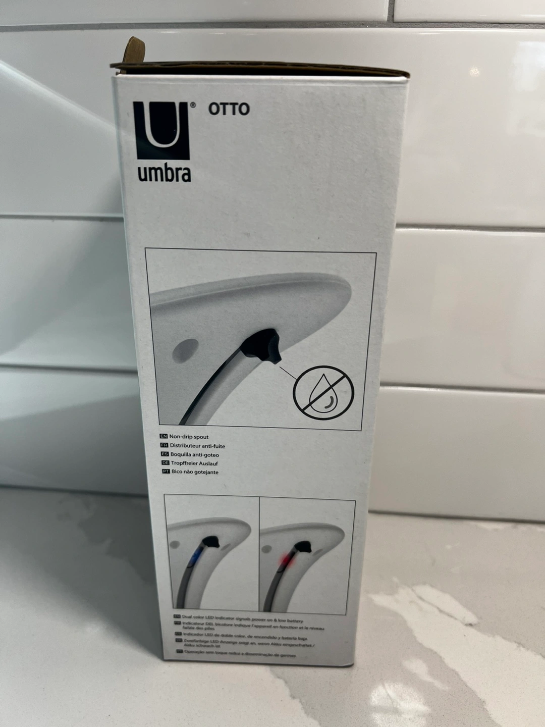 I'm selling a brand new Umbra Otto automatic soap and sanitizer dispenser! It holds 8.5 fl oz (250 mL) and features a non-drip spout. The box is included