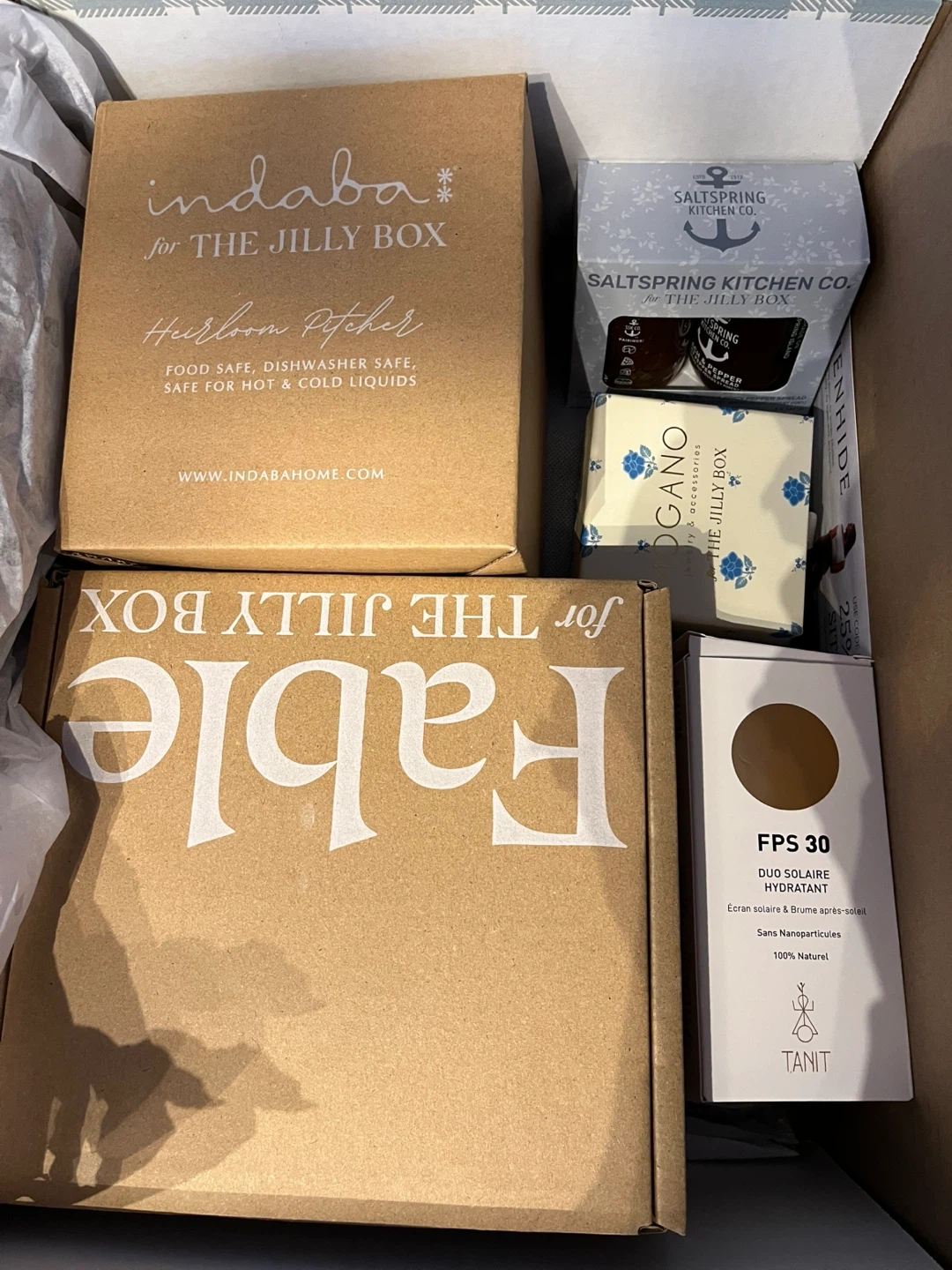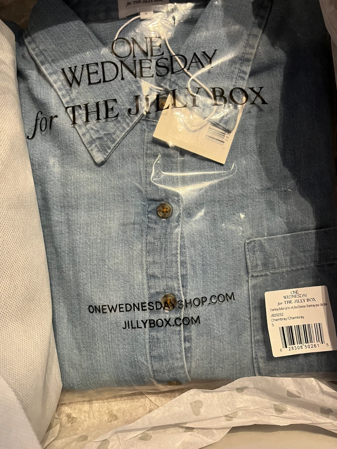 The Summer 2025 Jilly Box, inspired by a "Western Countryside" theme, contained seven full-size items from Canadian-owned brands. The collection has a total value of over $450 CAD. Great as a Christmas present, birthday or resale. BRAND NEW IN BOX. If you’d like to see pictures of the products, let me know. The seven pieces included in the collection were: Mogano Jade Jilly Studs: 14 karat gold-plated earrings that are versatile for any look. Salt Spring Kitchen for The Jilly Box: A custom collaboration item, likely a preserve or condiment, perfect for entertaining with cheese and crackers. One Wednesday Denim Shirt: A stylish denim shirt, noted for its design details and timeless appeal. SIZE SMALL Fable Little Bowls: A set of small bowls, ideal for charcuterie boards or small servings. Endaba Heirloom Pitcher: A decorative and functional pitcher, which Jillian Harris suggests using for fresh-cut flowers. Tan It Moisturizing Skincare Duo: A 100% natural rose hydrosol and facial oil set made in Canada to provide deep hydration. Soho Woven Bag: A handmade, functional bag woven from durable date palm leaf in Morocco, suitable for the beach, picnics, or market shopping. COLOR: Black