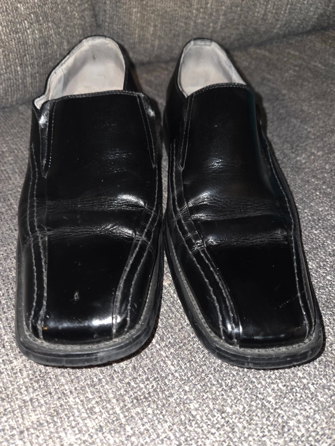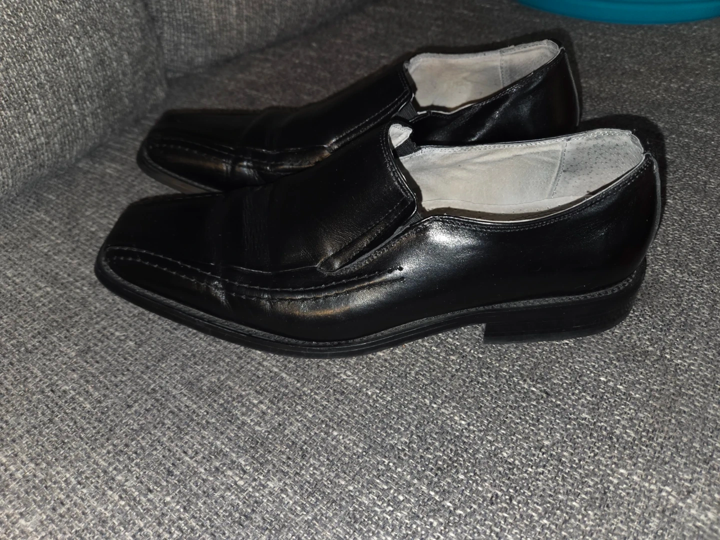 These are Stacy Adams Men's Beau Slip-On loafers. They are characterized by their smooth black leather upper, square toe, and slip-on style with twin elastic gored panels for a comfortable fit.