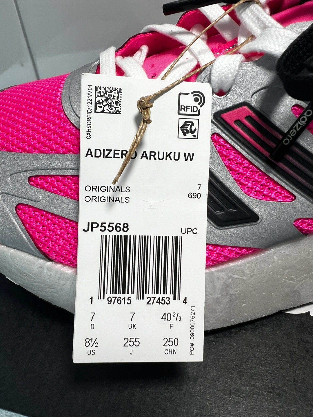 Selling a pair of New Adidas Adizero Aruku W running shoes in a vibrant pink and silver colourway! These women's shoes are a US size 8.5. Comes with the original box.
