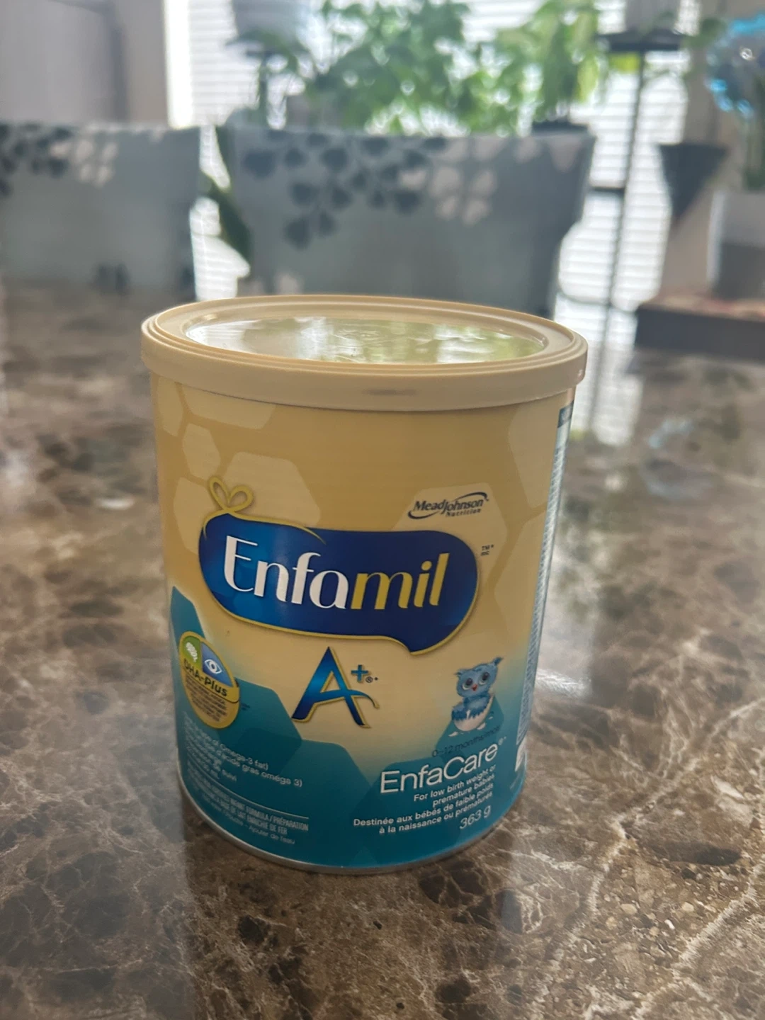 Selling a can of Enfamil A+ EnfaCare formula, perfect for babies with low birth weight or premature babies. It's designed to provide essential nutrition for your little one. The can contains 363g of formula.