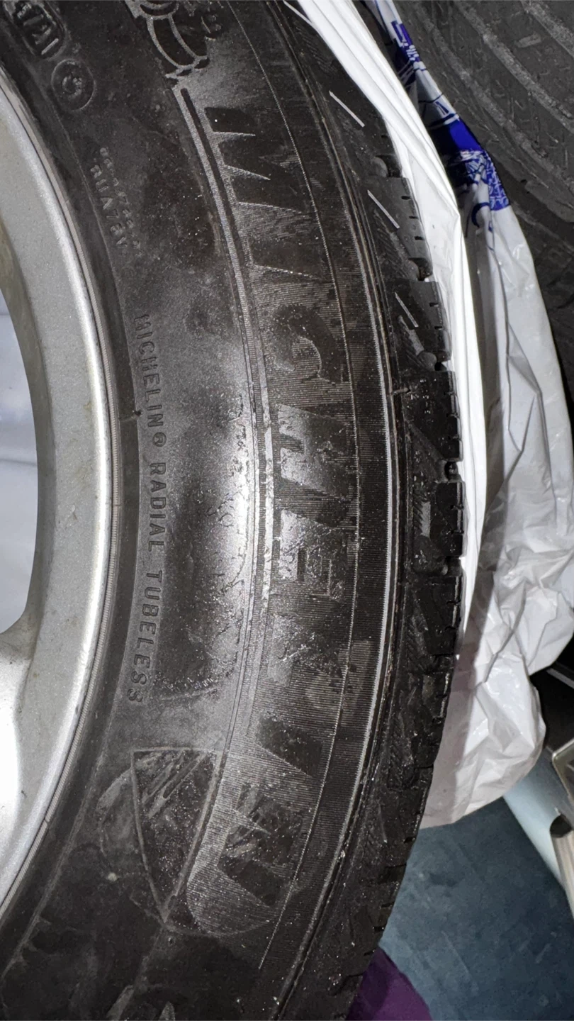 Selling a set of 4 used Michelin tire mounted on a Lexus rim. The tire size is 235/60R18. It shows some signs of wear, but still has some life left in it!