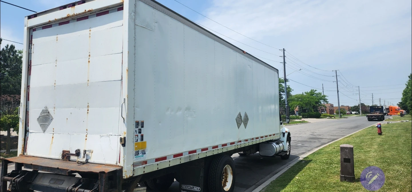 26ft box truck, equipped with a super heavy tailgate, air ride suspension and air brakes.
