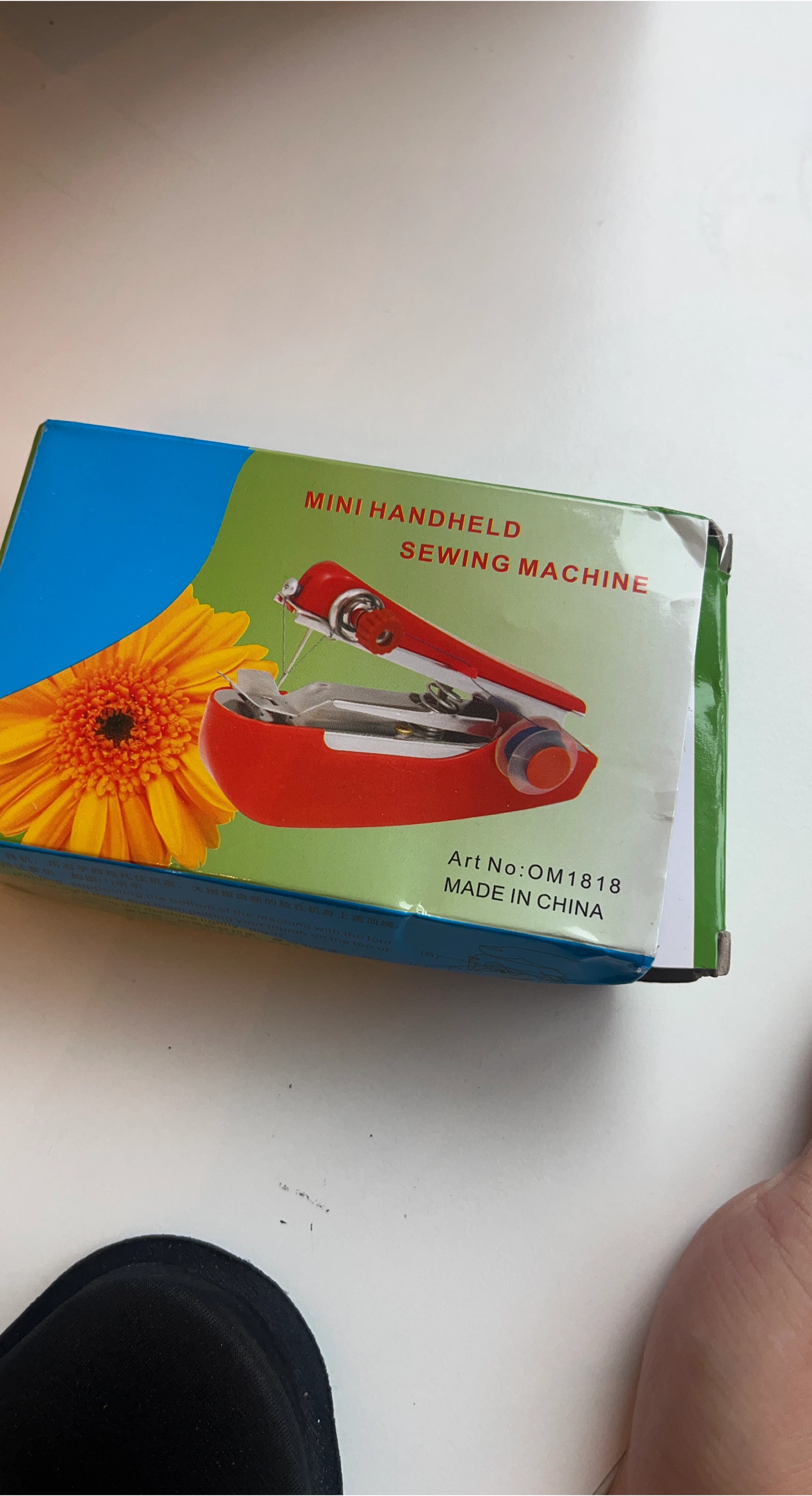 Selling a brand new, in-box mini handheld sewing machine! It's perfect for quick repairs and small sewing projects. The box includes the sewing machine itself, ready to go for your crafting needs