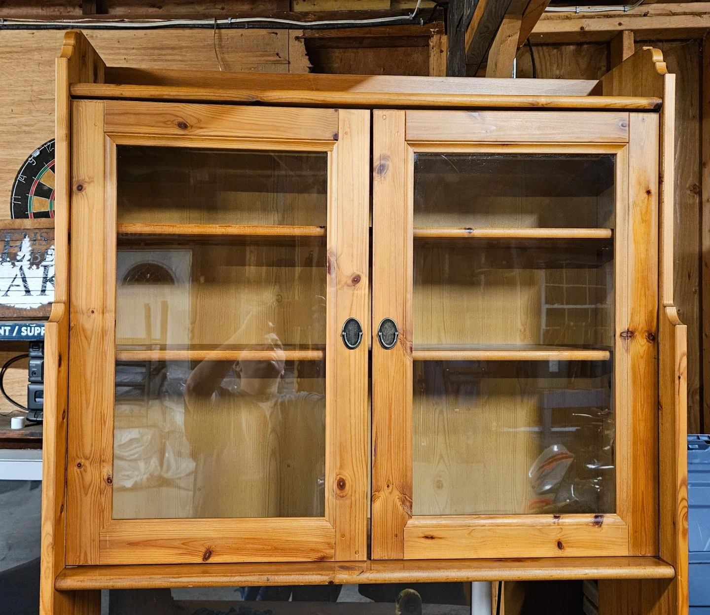 Selling a wooden display cabinet featuring glass doors! It has a warm, natural finish and offers ample shelving space for displaying your favourite items or storing your belongings. The cabinet is in great shape and ready to add a touch of rustic charm to your home