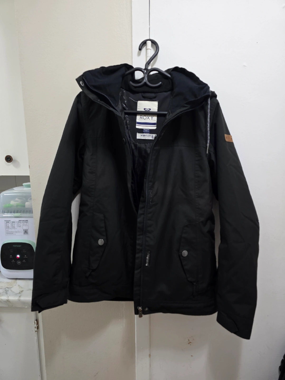 I'm selling a Roxy winter jacket in size XS. It's a stylish and functional jacket perfect for cold weather! The jacket is black and features Roxy's DryFlight technology. It's in great condition and ready to keep you warm this winter