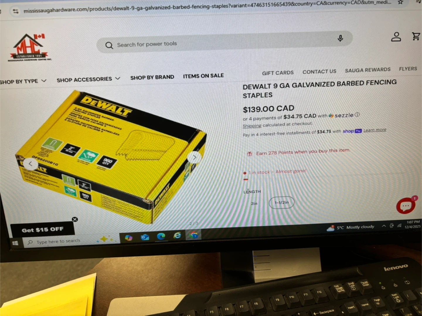 Selling two boxes of DeWalt 9 GA galvanized barbed fencing staples. Each box contains 960 staples and is for 1-3/4" fencing. The original price is $139 CAD. Total is one and a half box.