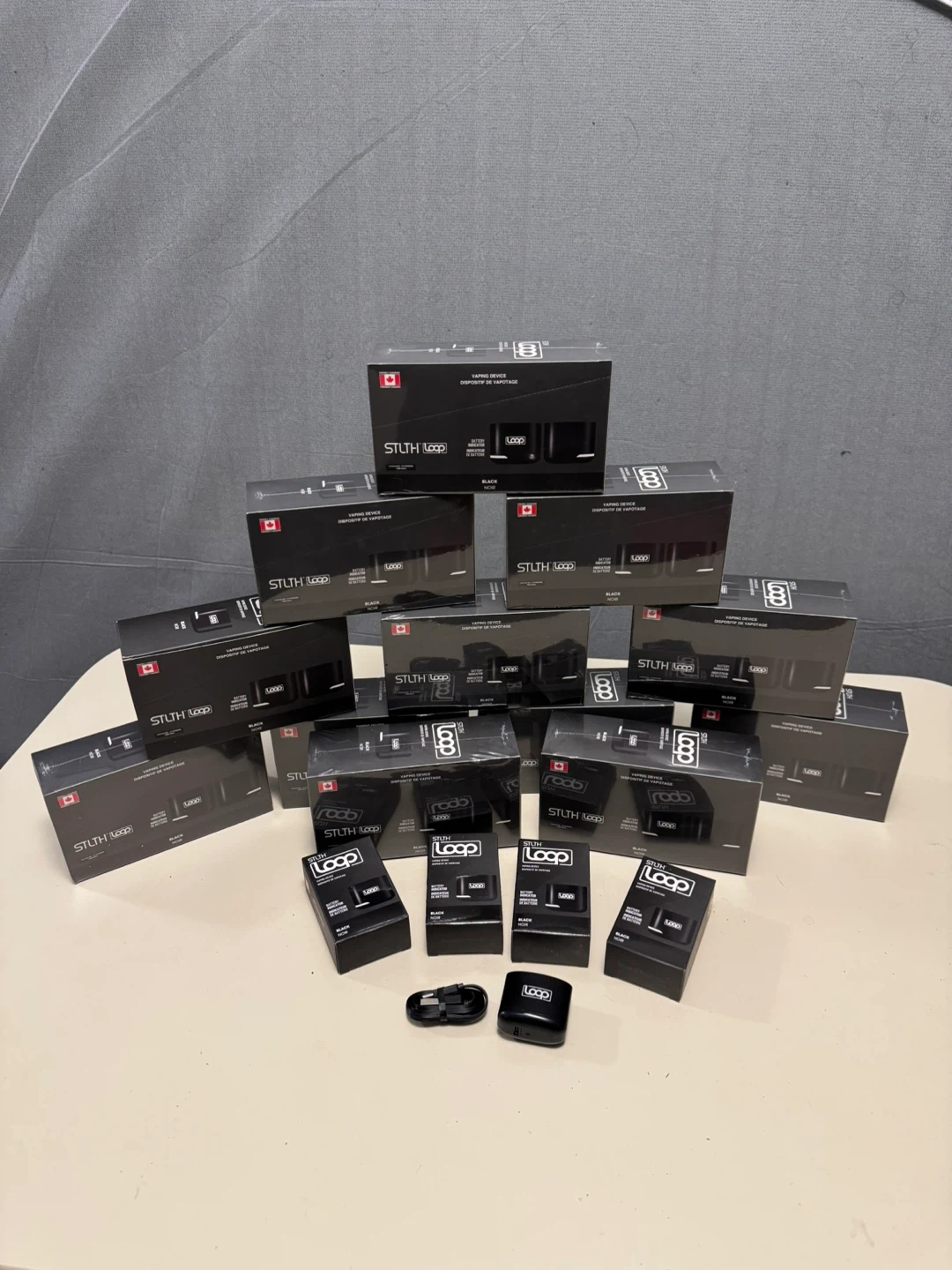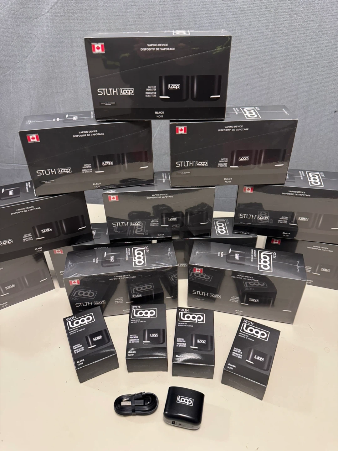 I have a brand new STLTH Loop vaping battery in black for sale! It is a 600 mAh battery. Rechargeable with a USB Type-C cable. The box includes the STLTH Loop vaping battery , a USB Type-C cable.