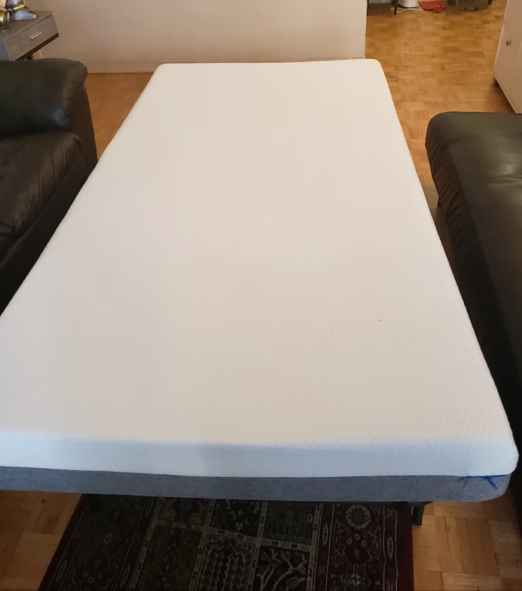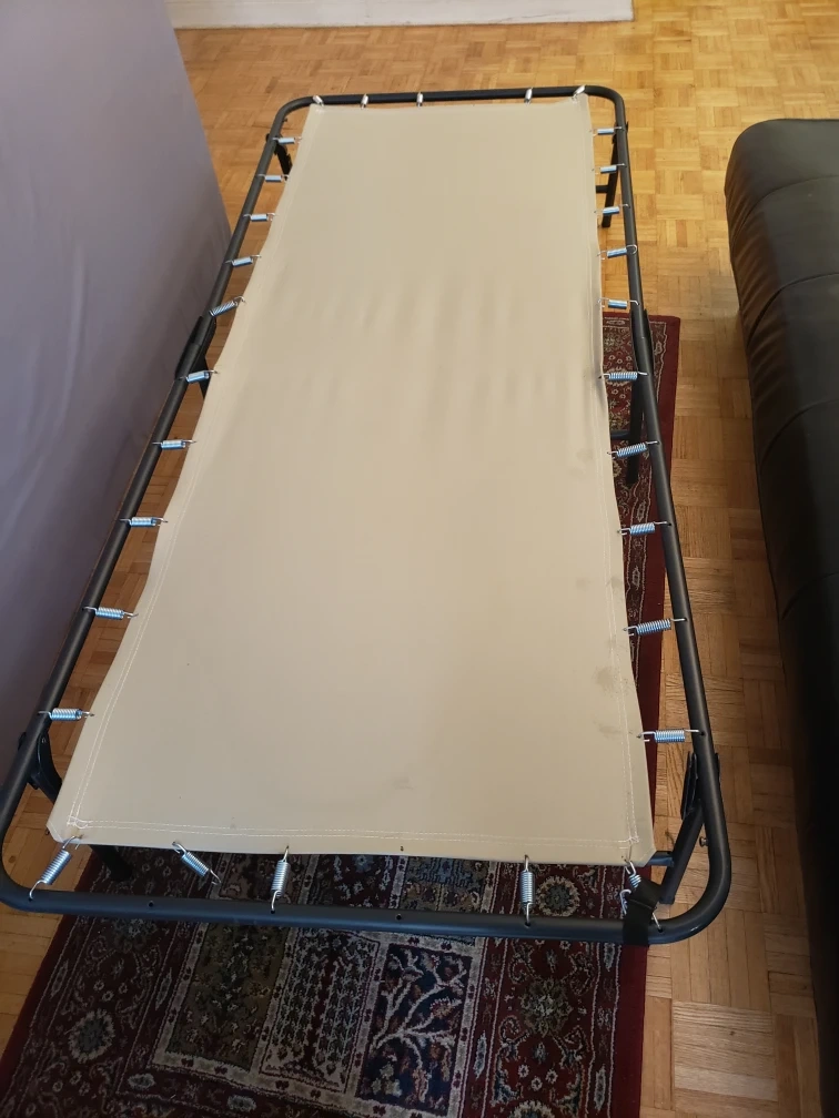Very neat and clean pet free smoke free. Used only for guests. Selling a folding bed frame that comes with a mattress! It's in great shape and super convenient for guests or small spaces. The mattress measures approximately 73 inches in length and 38 inches in width.