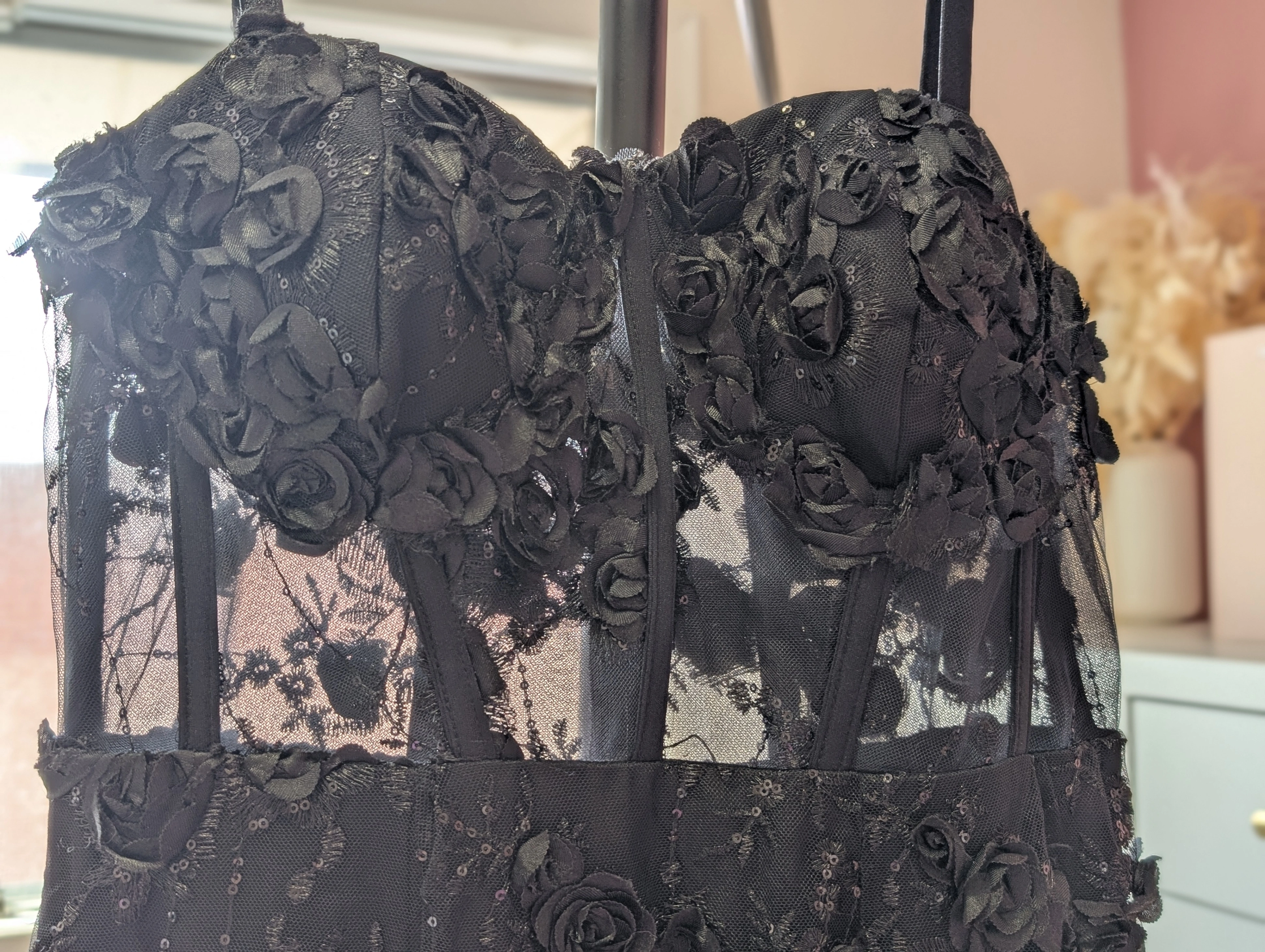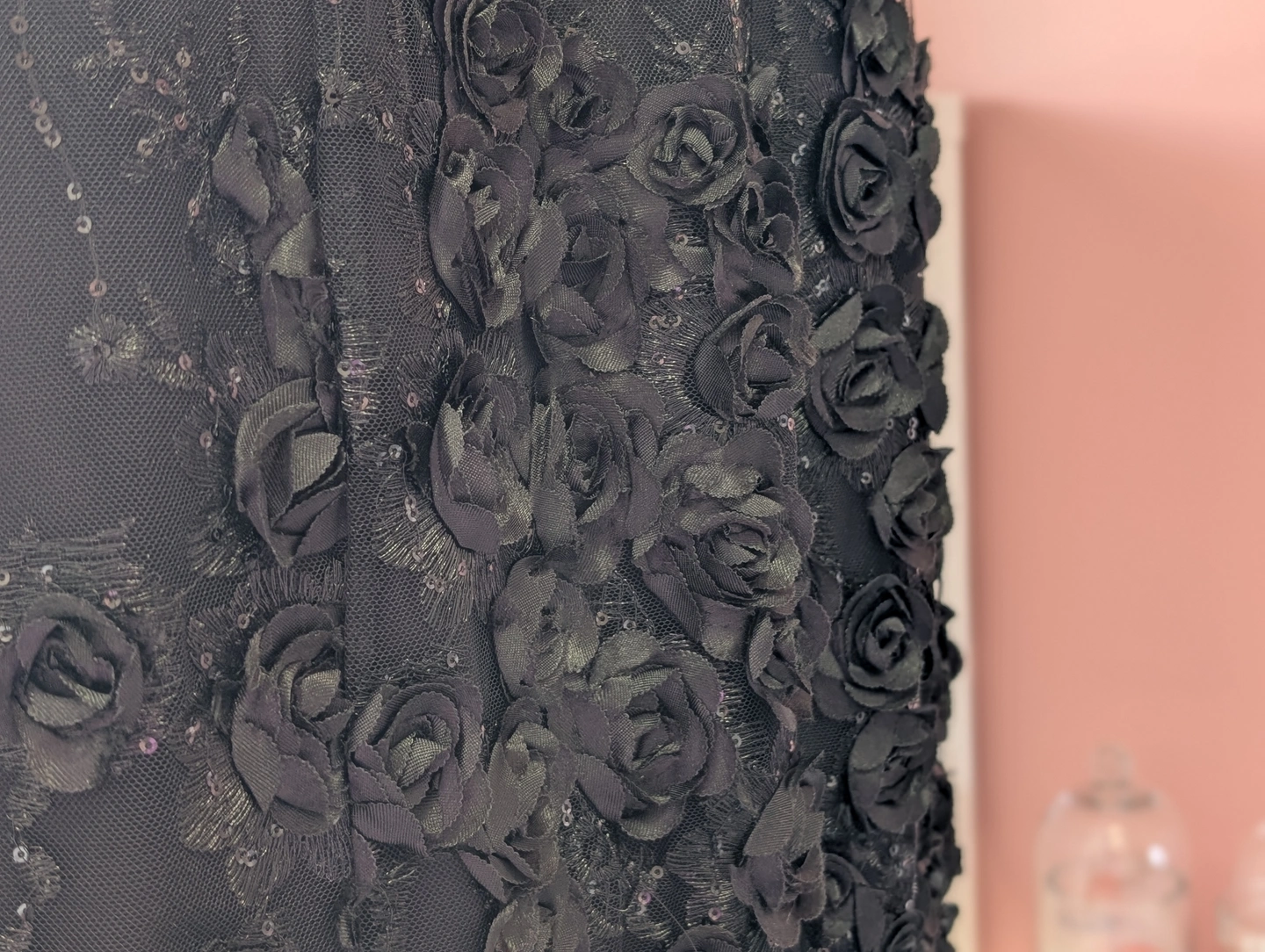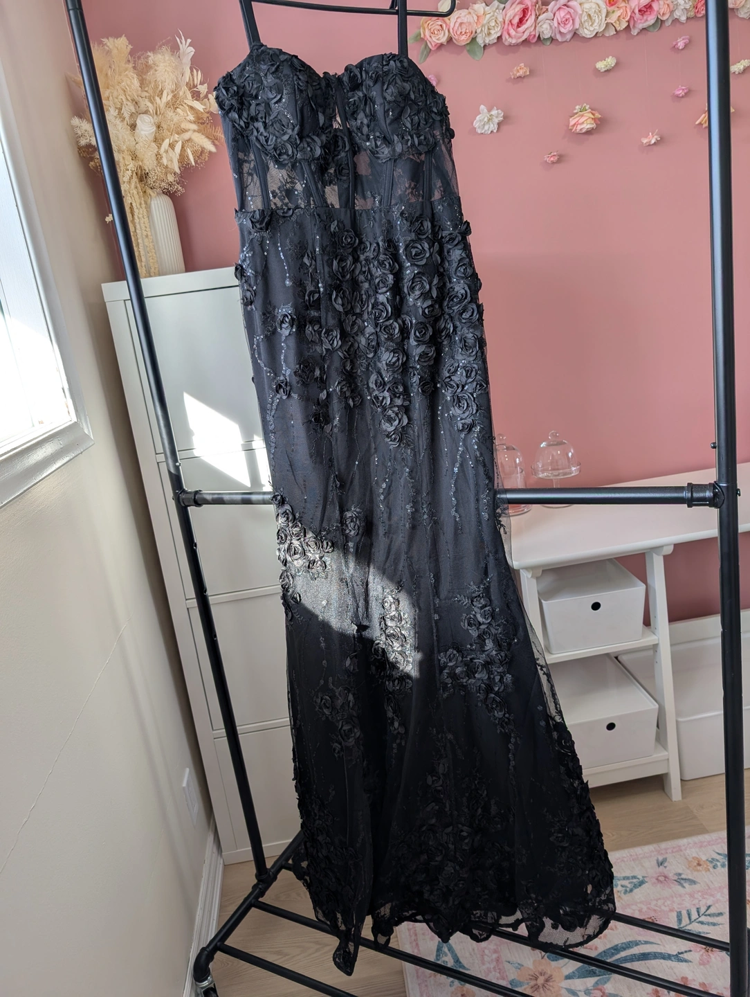 Size Small Black Corset Gown with 3D Floral Embellishments