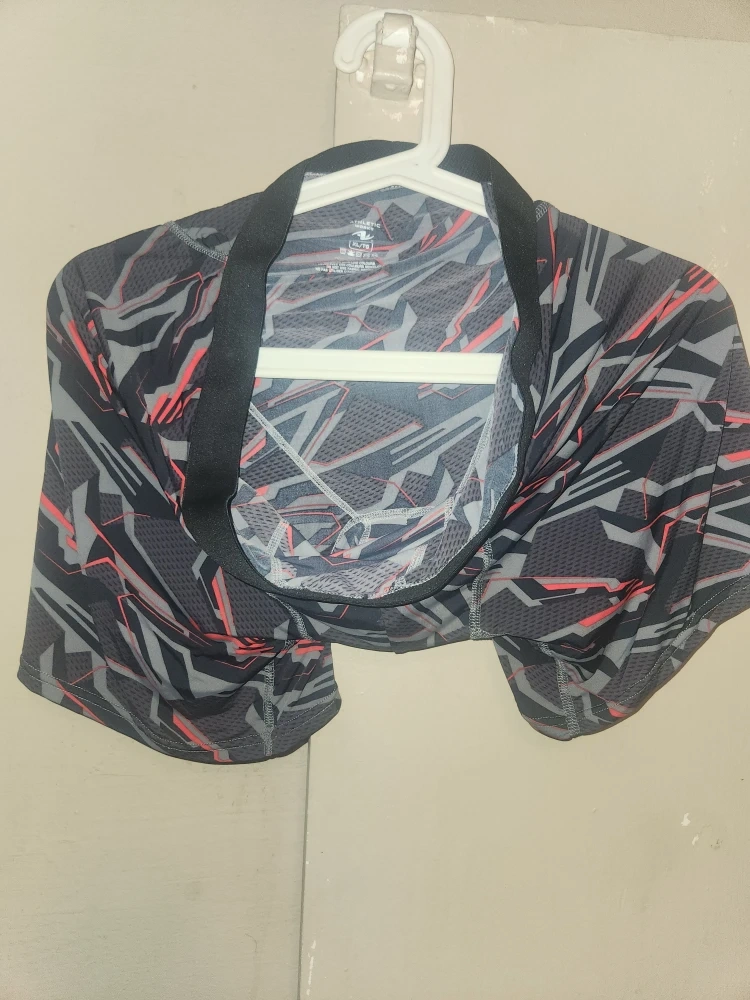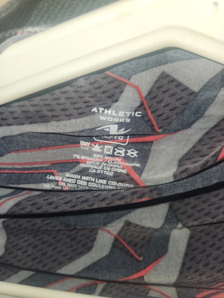 Gifting a men's activewear top from Athletic Works in size L. The material is 93% nylon and 7% spandex. It's in great condition and ready for your workouts! Pickup Only is