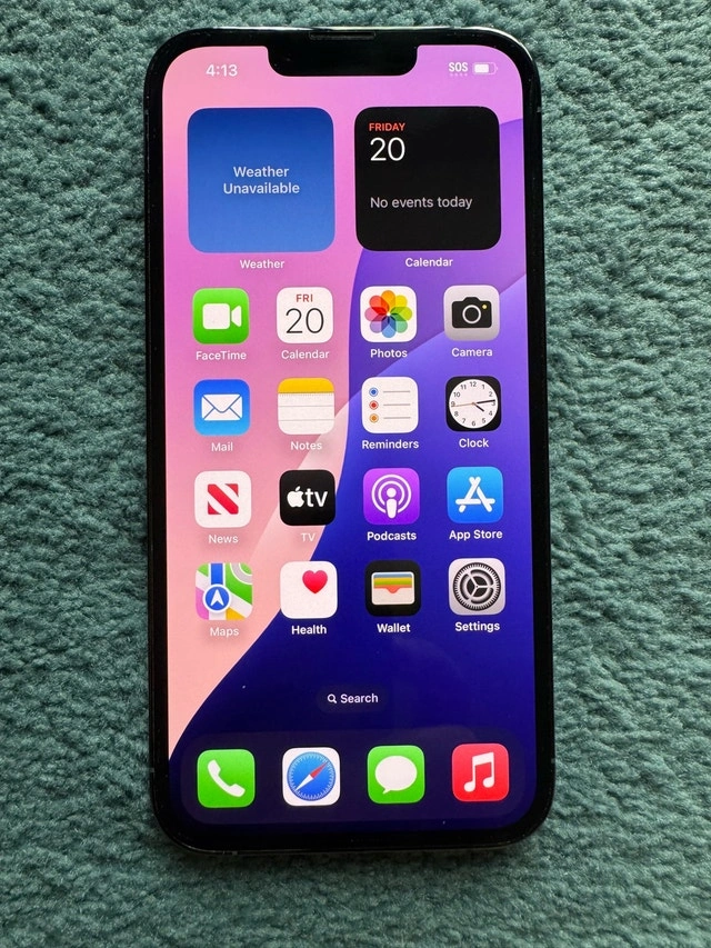 iPhone 13 Pro - 128GB in Sierra Blue. 84% battery health. Comes with an official leather Apple case and USB-C charging cable. Mint condition, unlocked, no box, no warranty.