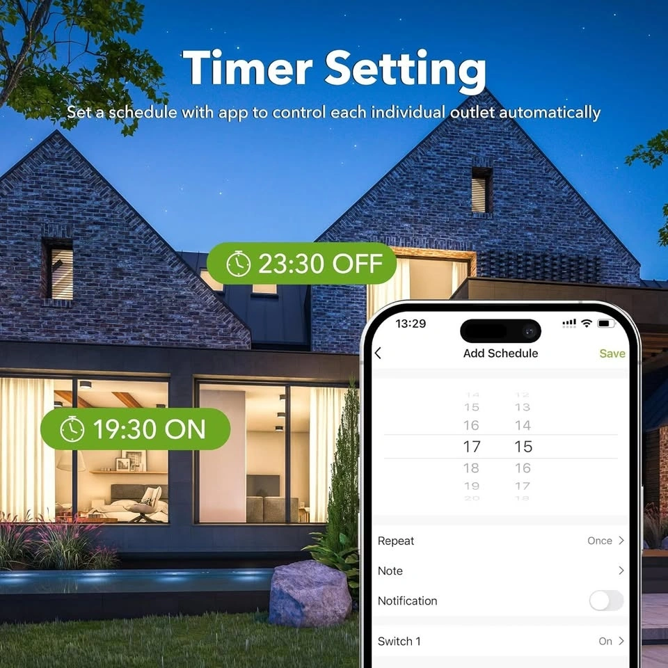 Outdoor Smart WiFi Plug, HBN Heavy Duty Wi-Fi Timer with Two Grounded Outlet, Wireless Remote Control by App Compatible with Alexa and Google Home Assistant 2.4 GHz Network only, ETL Listed