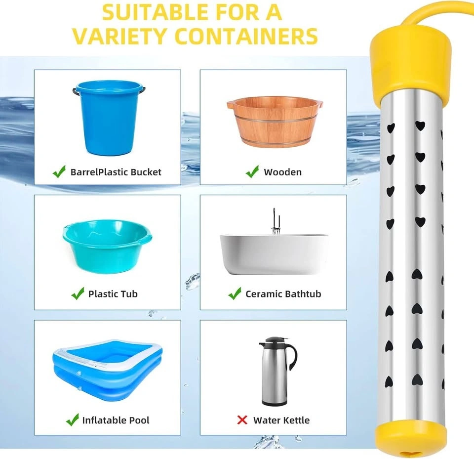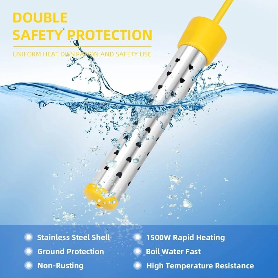 1500W Immersion Water Heater with Digital LCD Thermometer & Stainless Steel Guard - Fast Heating for Bathtub, Travel Camping Mini Pool, Bucket | Safe & Portable Heat 5 Gallons of Water (Yellow)