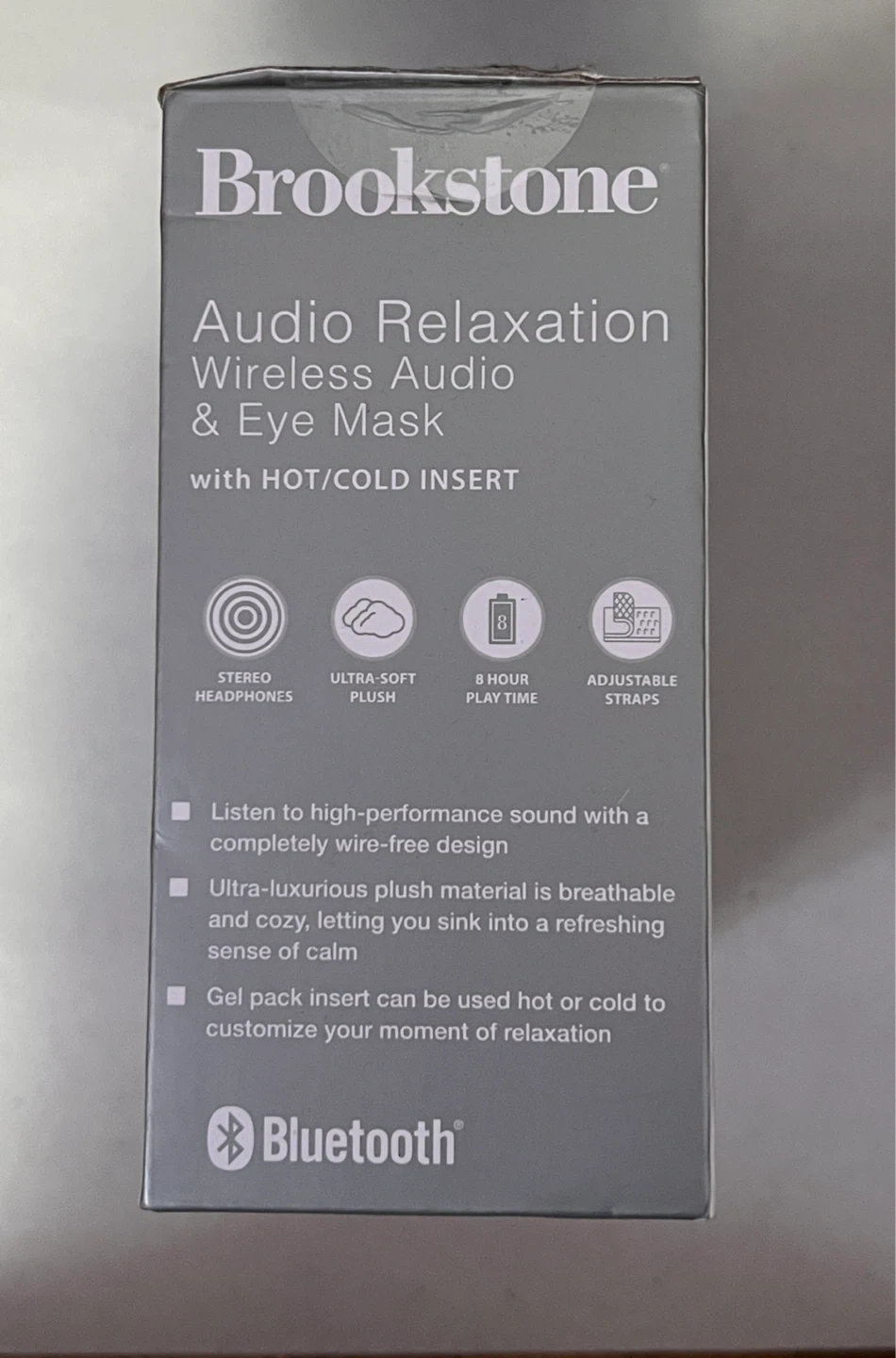 Here's a Brookstone audio relaxation wireless eye mask! It has hot and cold insert.