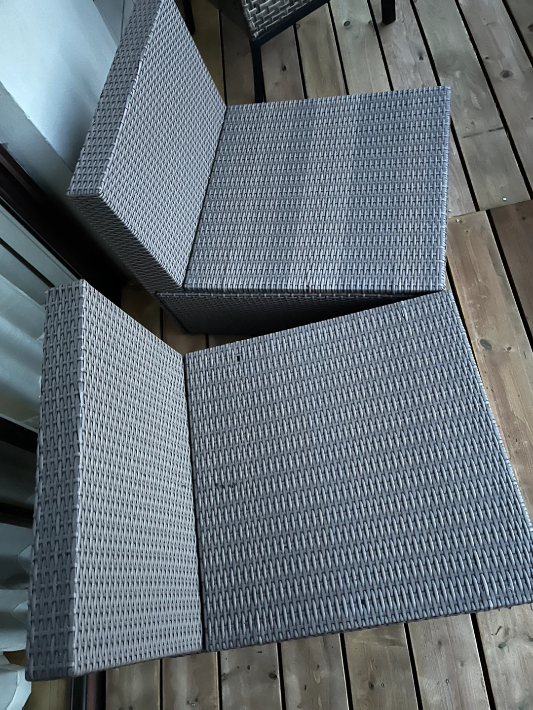Selling a set of two wicker outdoor patio chairs. They're perfect for relaxing on your deck or patio. The chairs are in great condition and ready to enjoy - just missing two pillows