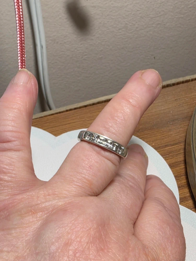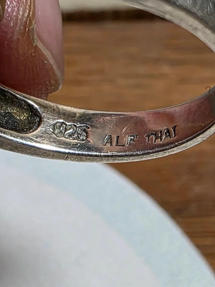 Selling a sterling silver ring with rhinestones. It's in great shape and ready to wear! Size 7. Markings inside refer to the ring being Sterling Silver from Thailand.