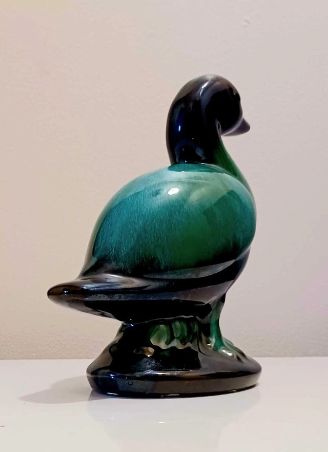 Add a touch of mid-century charm to your home with this Blue Mountain Pottery duck figurine! This piece is a beautiful gradient of green and black and stands approximately 8 inches tall. It's a lovely piece, showcasing the unique glazing techniques BMP was known. Excellent Condition. If the ad is up, it's still available! Please check out my other rare collectibles!