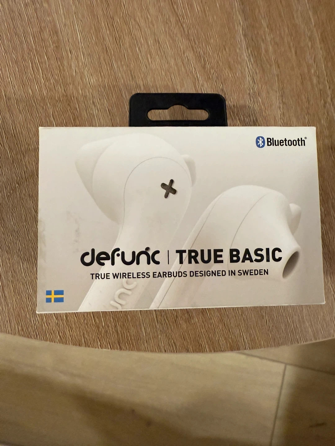 Selling a brand new pair of Defunc TRUE BASIC true wireless earbuds, still sealed in the box! These earbuds are designed in Sweden and offer powerful sound with a secure fit. Enjoy up to 22 hours of playtime. They feature Bluetooth 5.2, USB-C charging, and a wireless range of 10 meters. The box includes the charging case as well