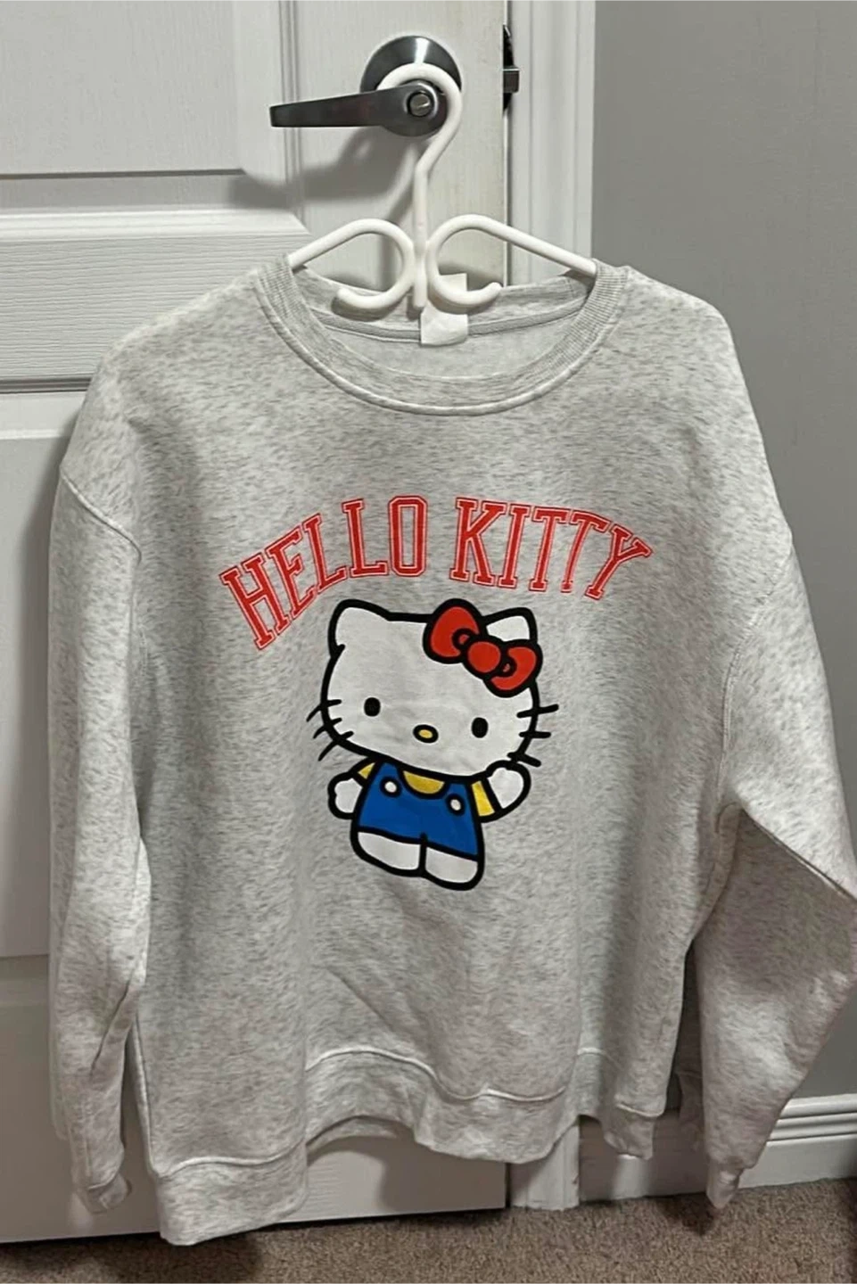 Selling a super cute Hello Kitty sweatshirt! It's a light grey colour and features Hello Kitty on the front. Perfect for any Hello Kitty fan!