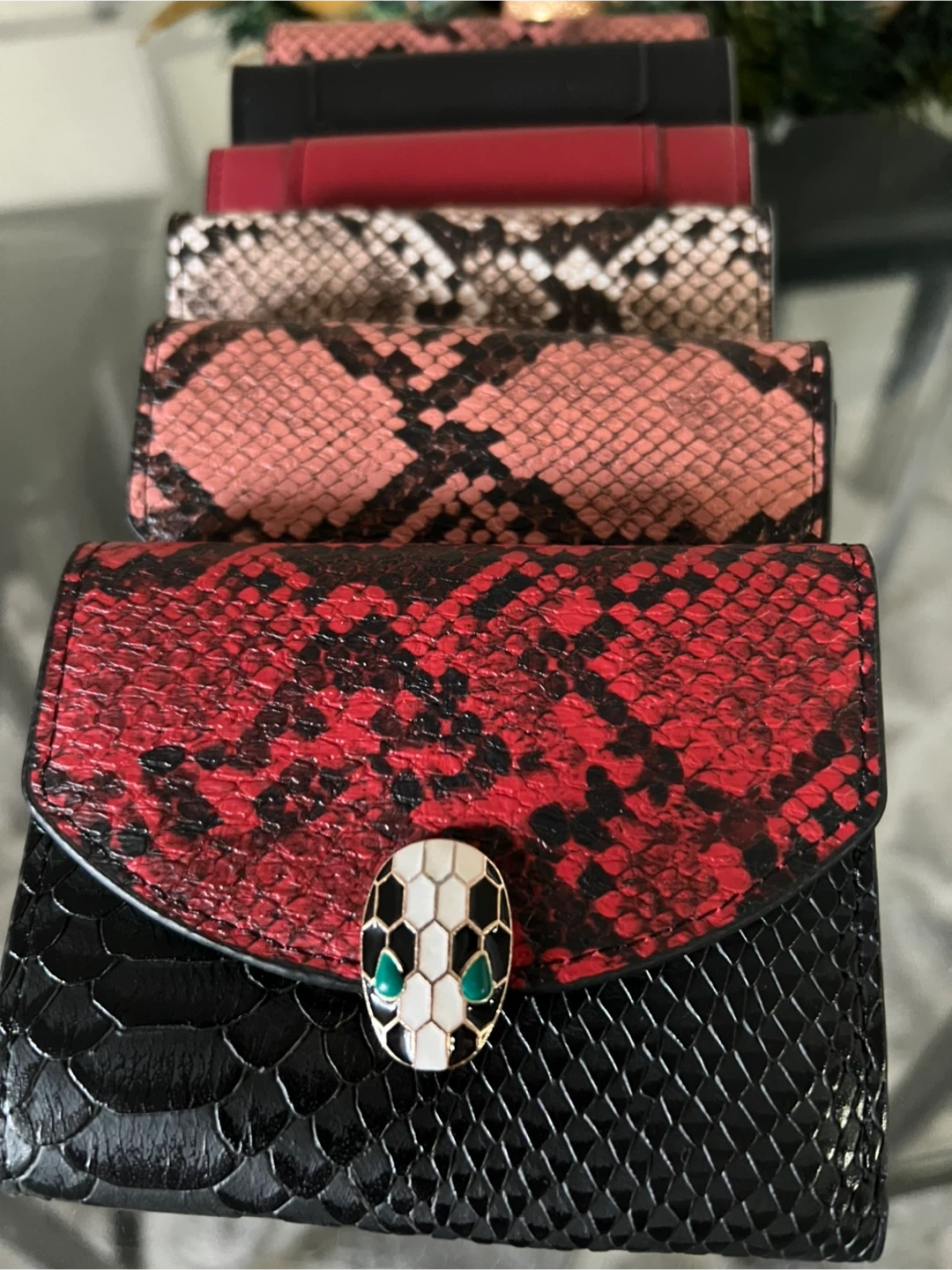 Stylish wallets available in a variety of colours and snake print patterns! These wallets feature a unique serpent-inspired clasp. Perfect for adding a touch of luxury to your everyday essentials! High quality wallets brand new. Perfect for Christmas gift.