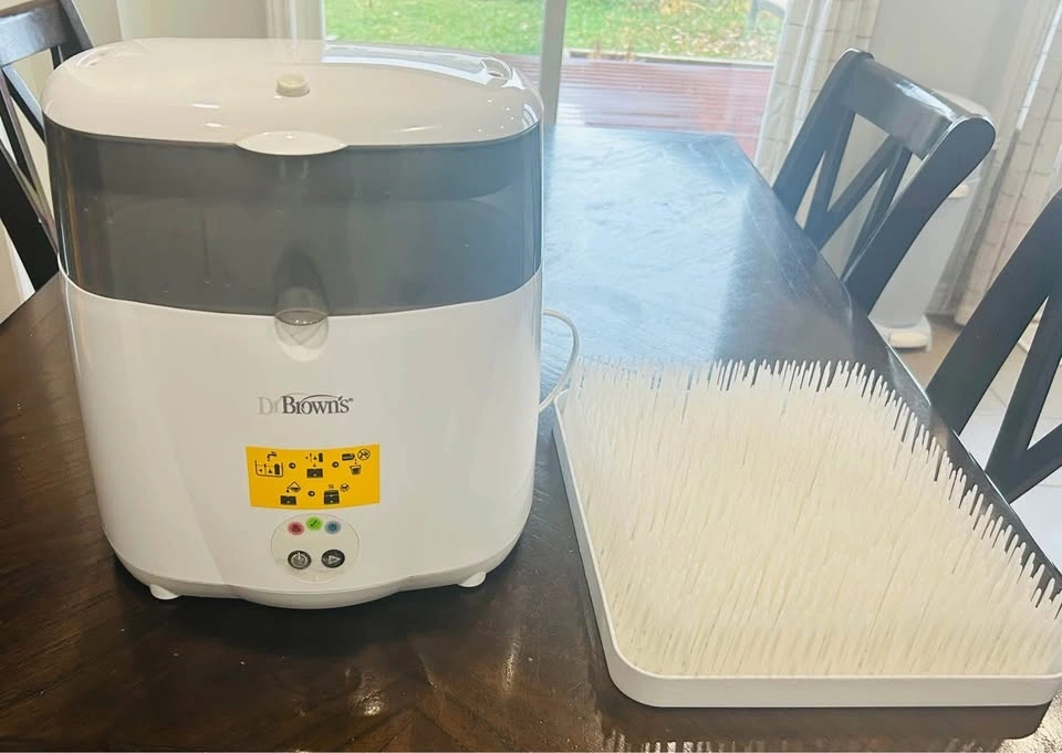 Selling a Dr. Brown’s Electric Bottle Sterilizer and Boon Grass Countertop Drying Rack — both in excellent, gently used condition.